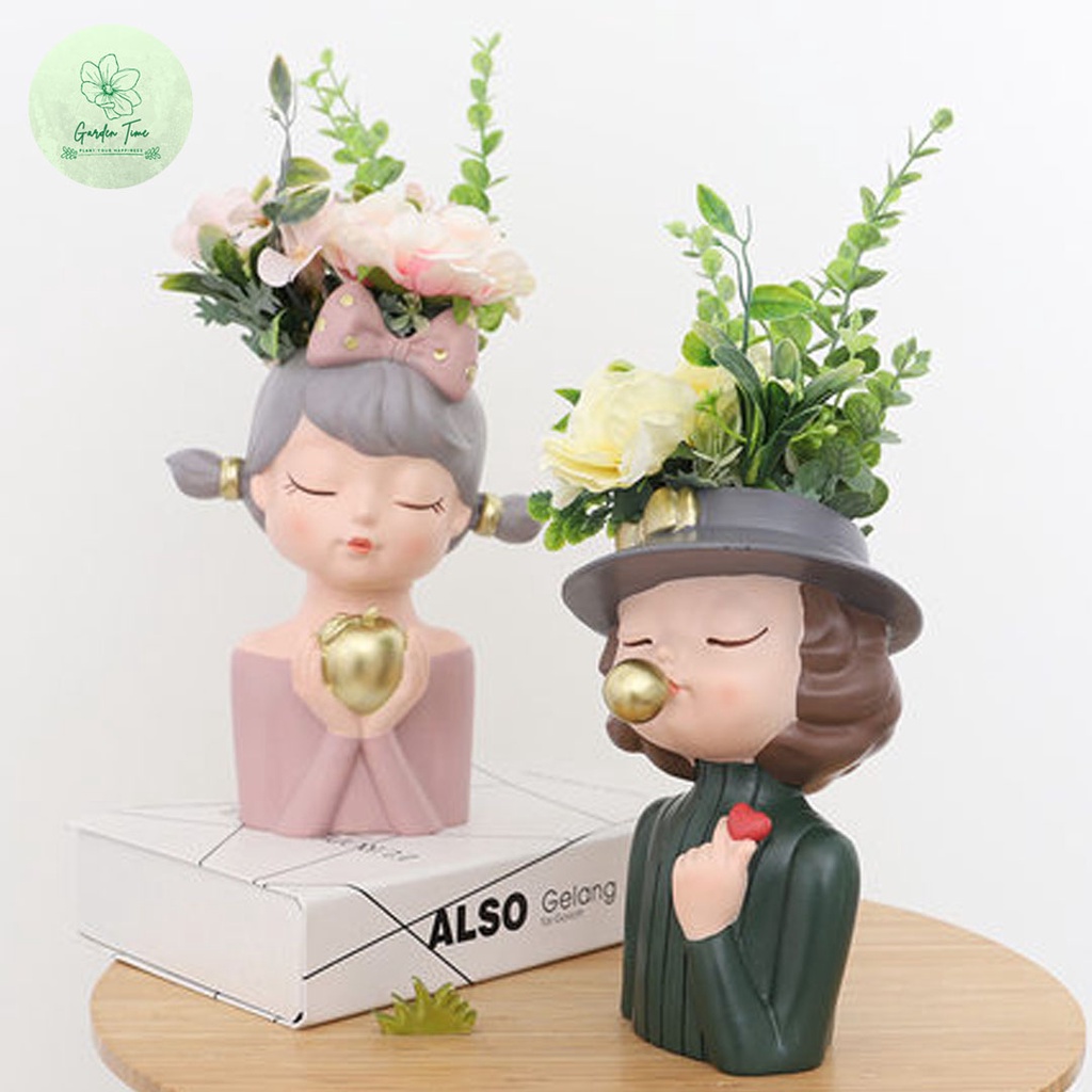 กระถางดอกไม้เรซิ่น ลายลูกคุณหนู ขนาดประมาณ 25cm กระถางต้นไม้ ของแต่งบ้าน แต่งสวน ช่อดอกไม้ ลูกคุณหนู