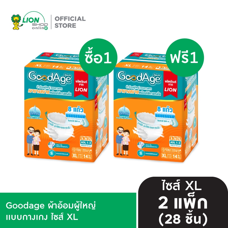 [1 ฟรี 1] Goodage ผ้าอ้อมผู้ใหญ่ เเบบกางเกง 2 แพ็ก