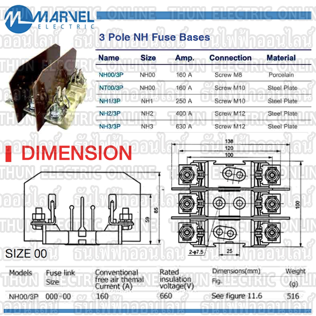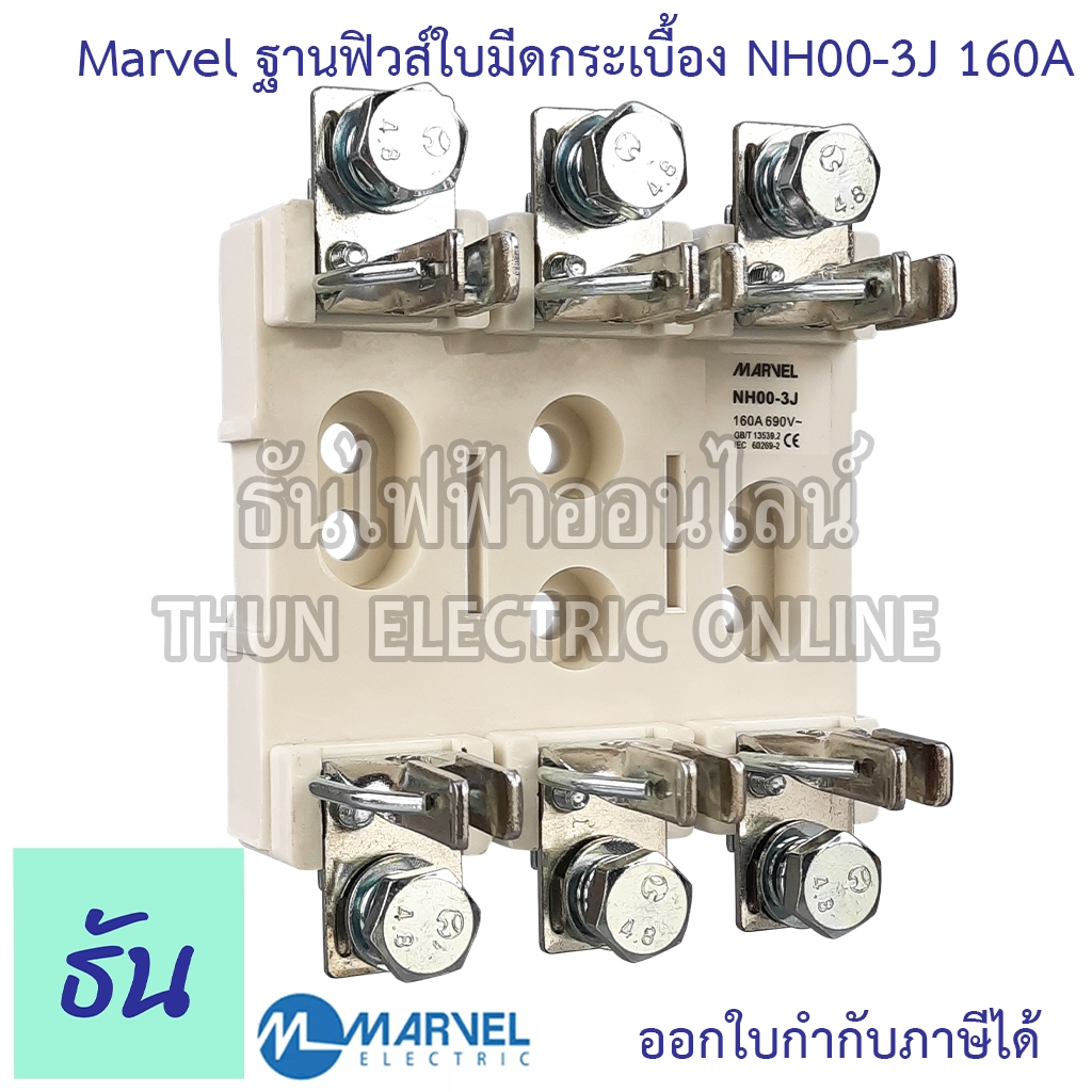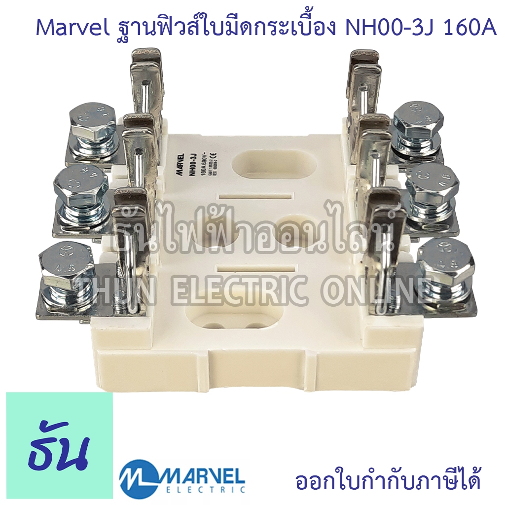 Marvel ฐานฟิวส์ใบมีด 3P NH00-3J แบบกระเบื้อง NH00/3P 160A porcelain ฐานฟิวส์ 3 เฟส ฟิวส์ใบมีด 3 โพล แท้ 100%
