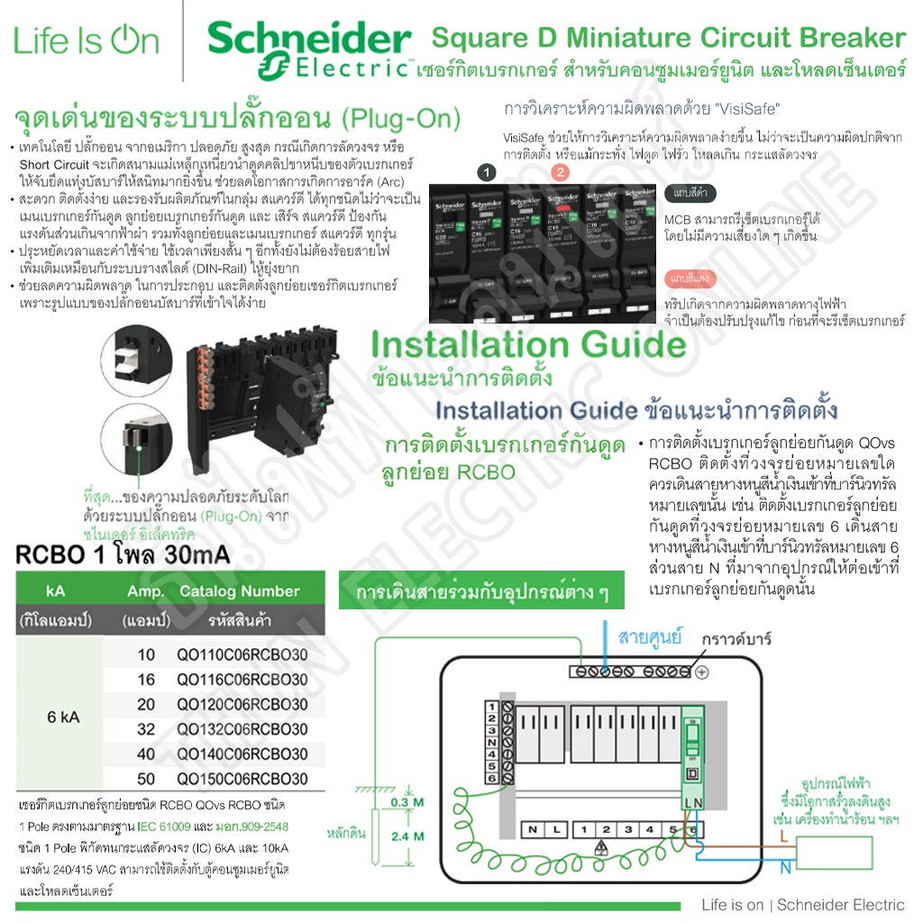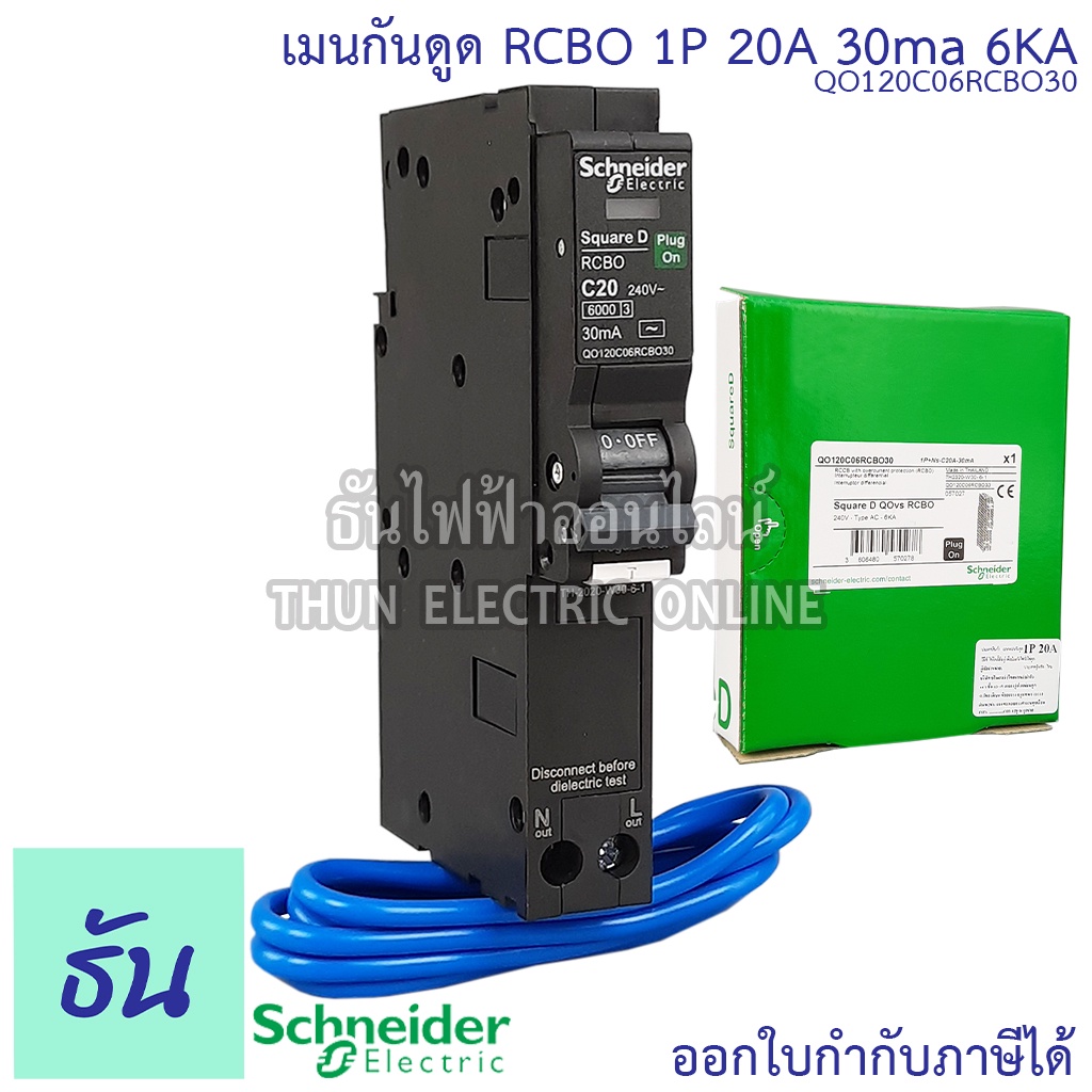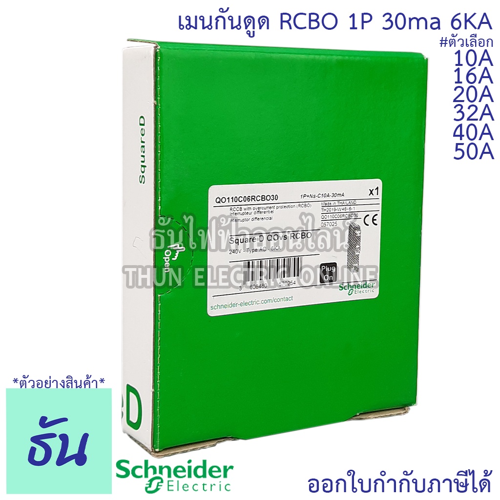 Schneider เบรกเกอร์กันดูด RCBO 1P 10A 16A 20A 32A 40A 50A 6kA 30mA ลูกเซอร์กิตกันดูด ลูกย่อยกันดูด QO1C06RCBO30 Square D