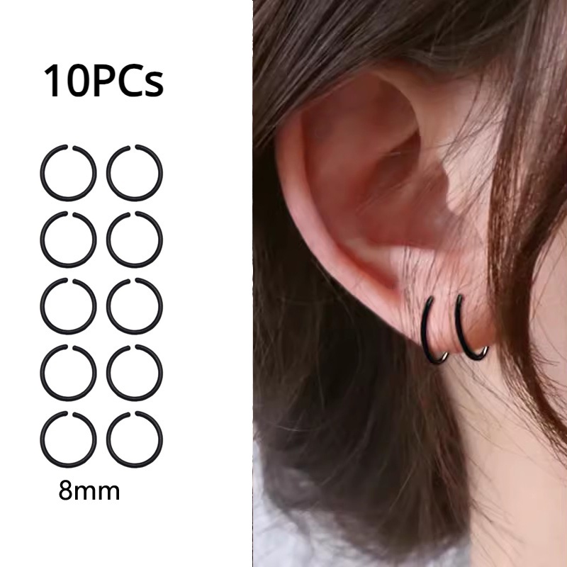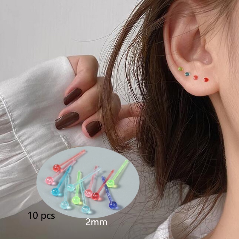 Roselife ต่างหูสตั๊ด เรซิ่นใส ทรงกลม สีดํา กันน้ํา กันแพ้ เครื่องประดับ สําหรับผู้หญิง ผู้ชาย 10 ชิ้น (มาไม่มีจุกปิดหู)