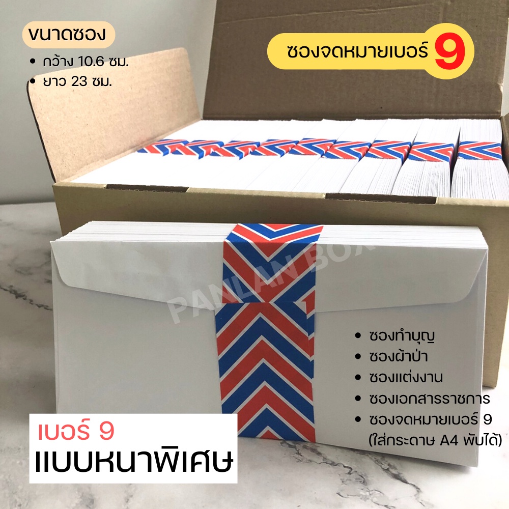 ( 25/50 ซอง ) ซองจดหมายสีขาว เบอร์ 9 ฝาสามเหลี่ยม