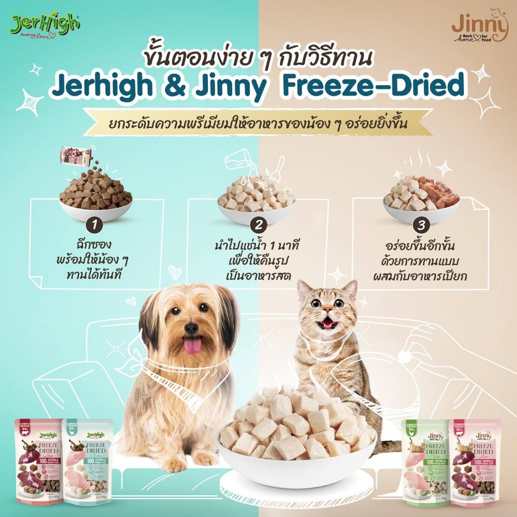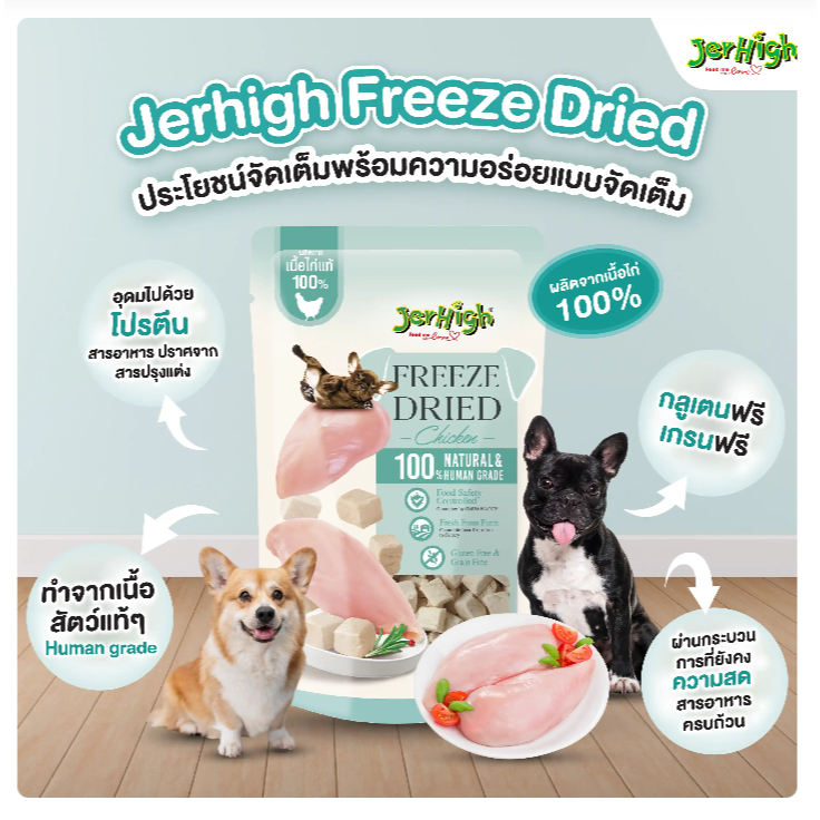 (แพ็ค3ถุง) JerHigh Freeze dried ขนมสุนัข สูตรเนื้อไก่ ฟรีซดราย เนื้อแท้อบแห้ง 40กรัม ( เจอร์ไฮ ขนมหมา เจอไฮ)