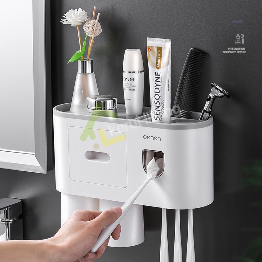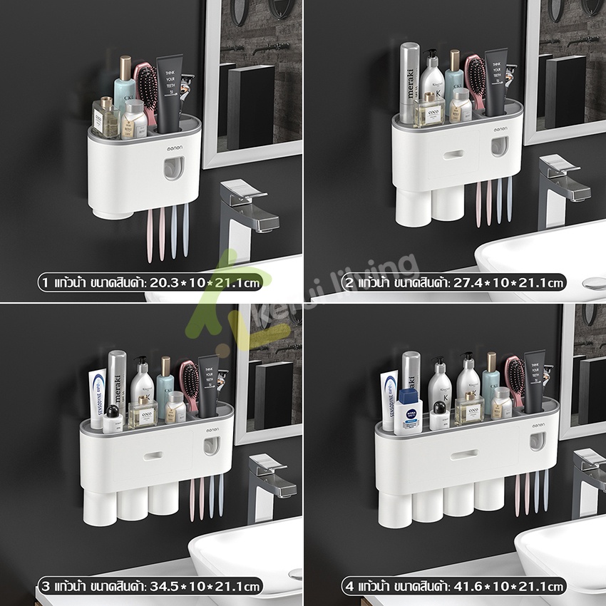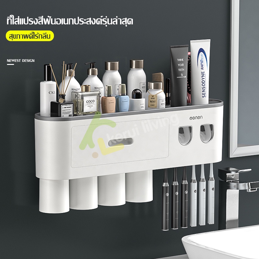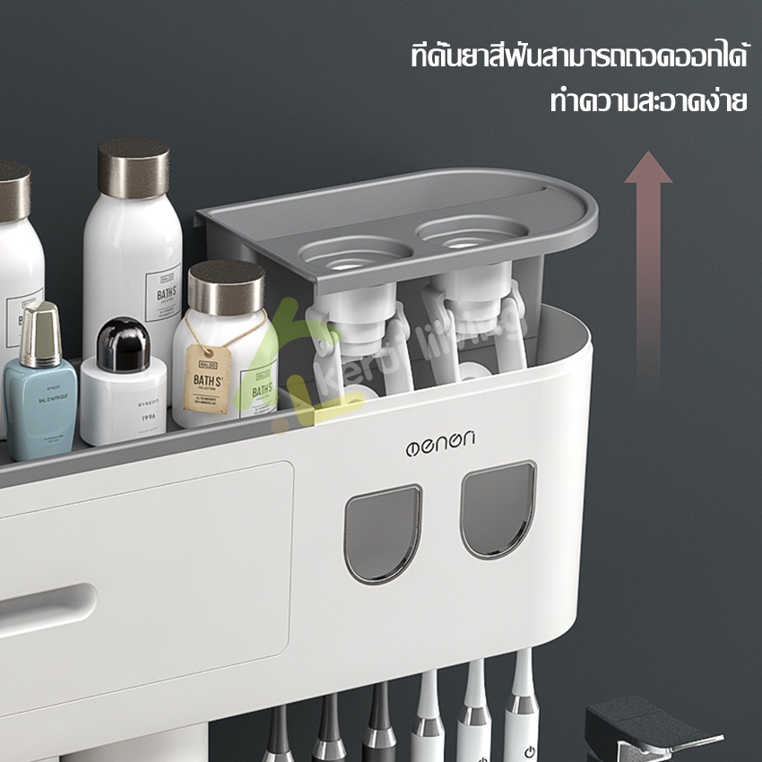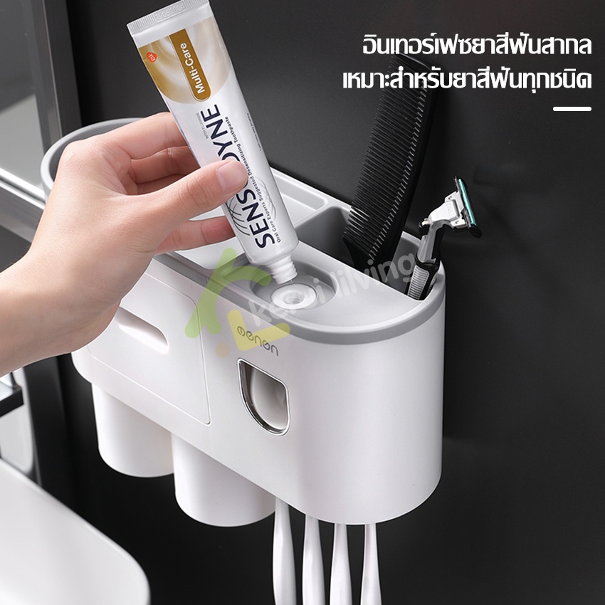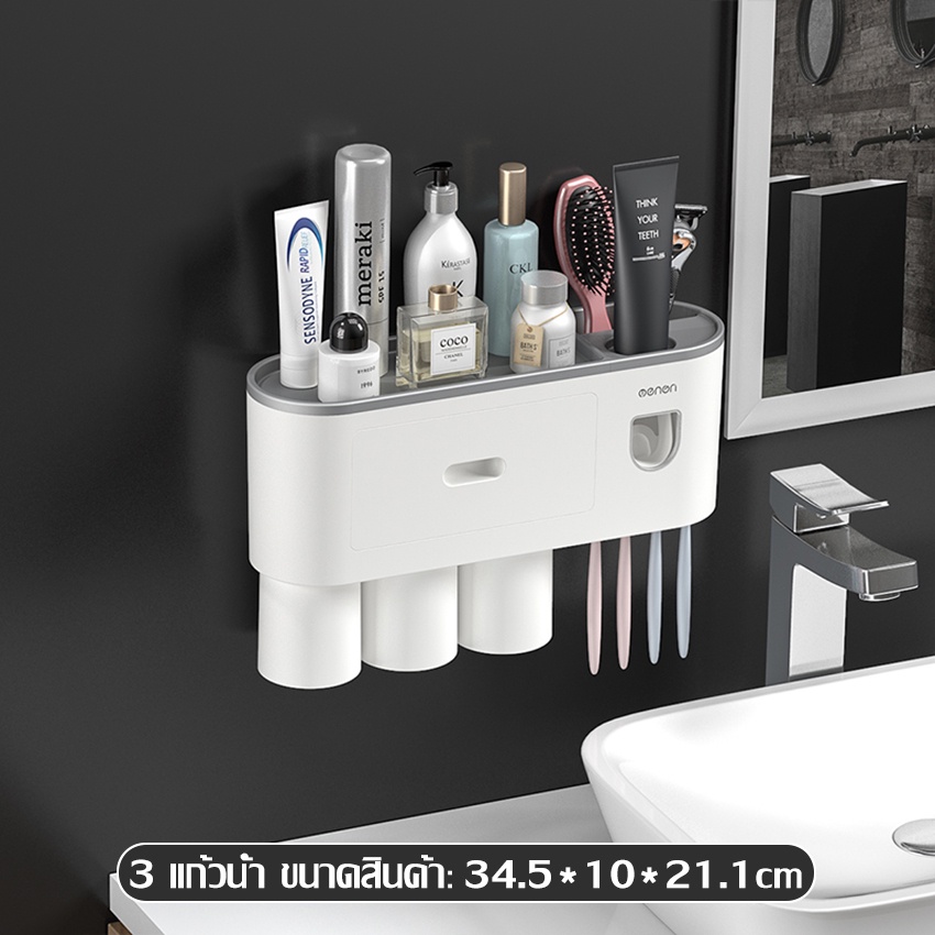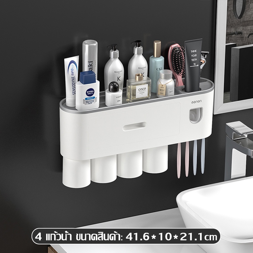 Ecoco ที่บีบยาสีฟัน ที่วางแปรงสีฟัน ชั้นวางของในห้องน้ำ ยาสีฟัน อเนกประสงค์ อุปกรณ์แขวนแปรงสีฟันพร้อมแก้ว