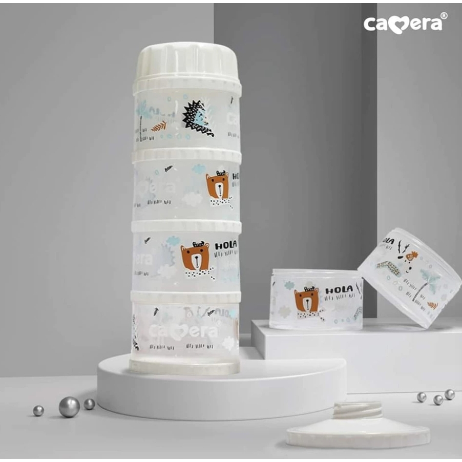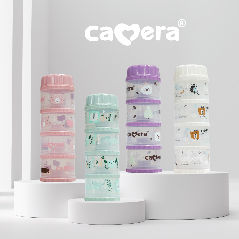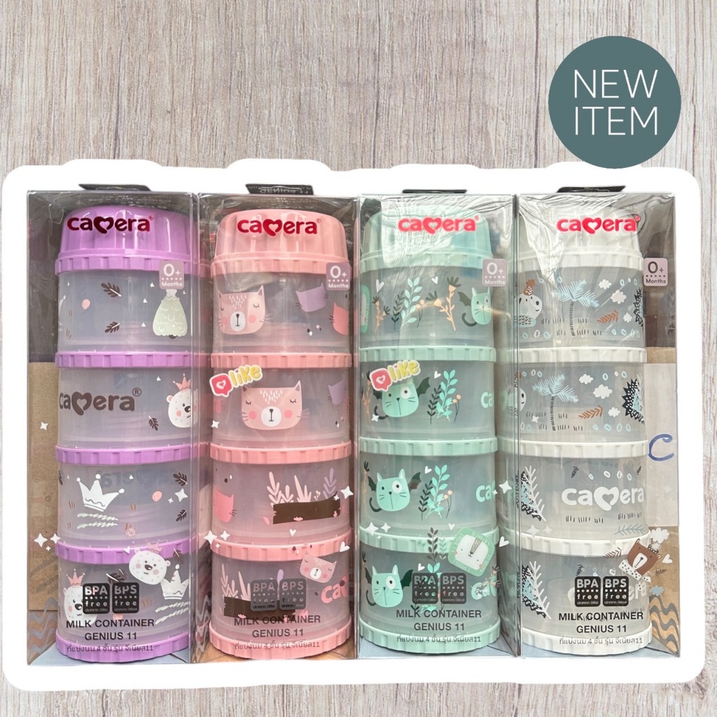 Camera Baby ที่เก็บนมผง 4 ชั้น แบ่งนมผง ตวงนม 4 ชั้น มีฝาเทนมทุกชั้น Genius 11" PP นึ่งได้