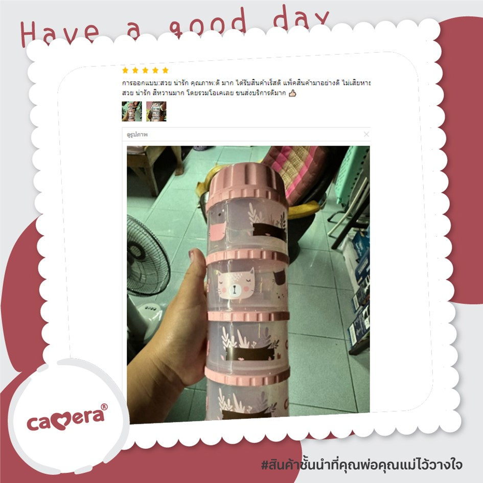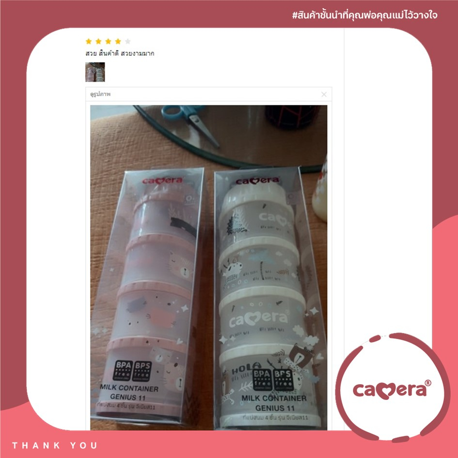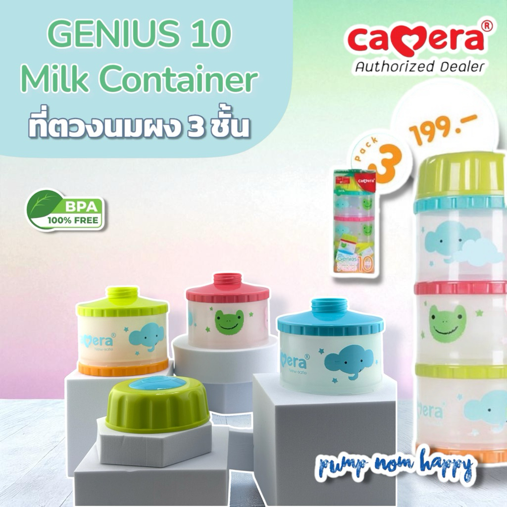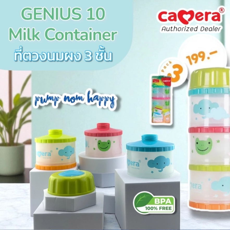 Camera Baby ที่เก็บนมผง 4 ชั้น แบ่งนมผง ตวงนม 4 ชั้น มีฝาเทนมทุกชั้น Genius 11" PP นึ่งได้