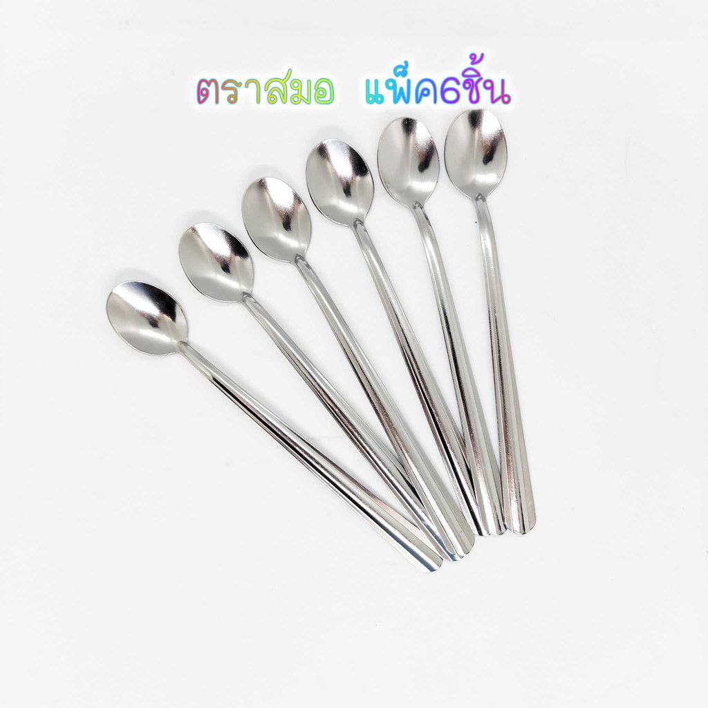 [แพ็ค6ชิ้น] ช้อนโซดา ช้อนสแตนเลส ด้ามยาว ใช้ตักไอติมและชงเครื่องดื่ม
