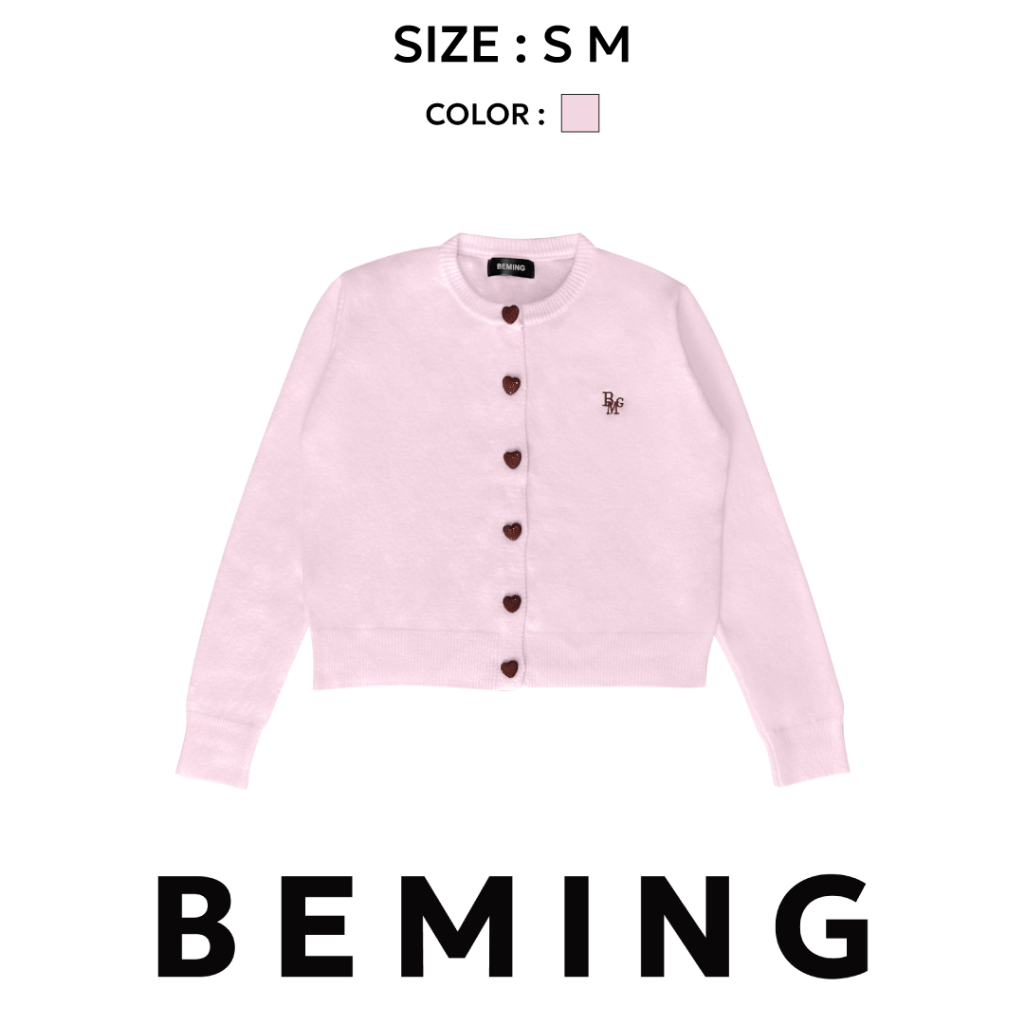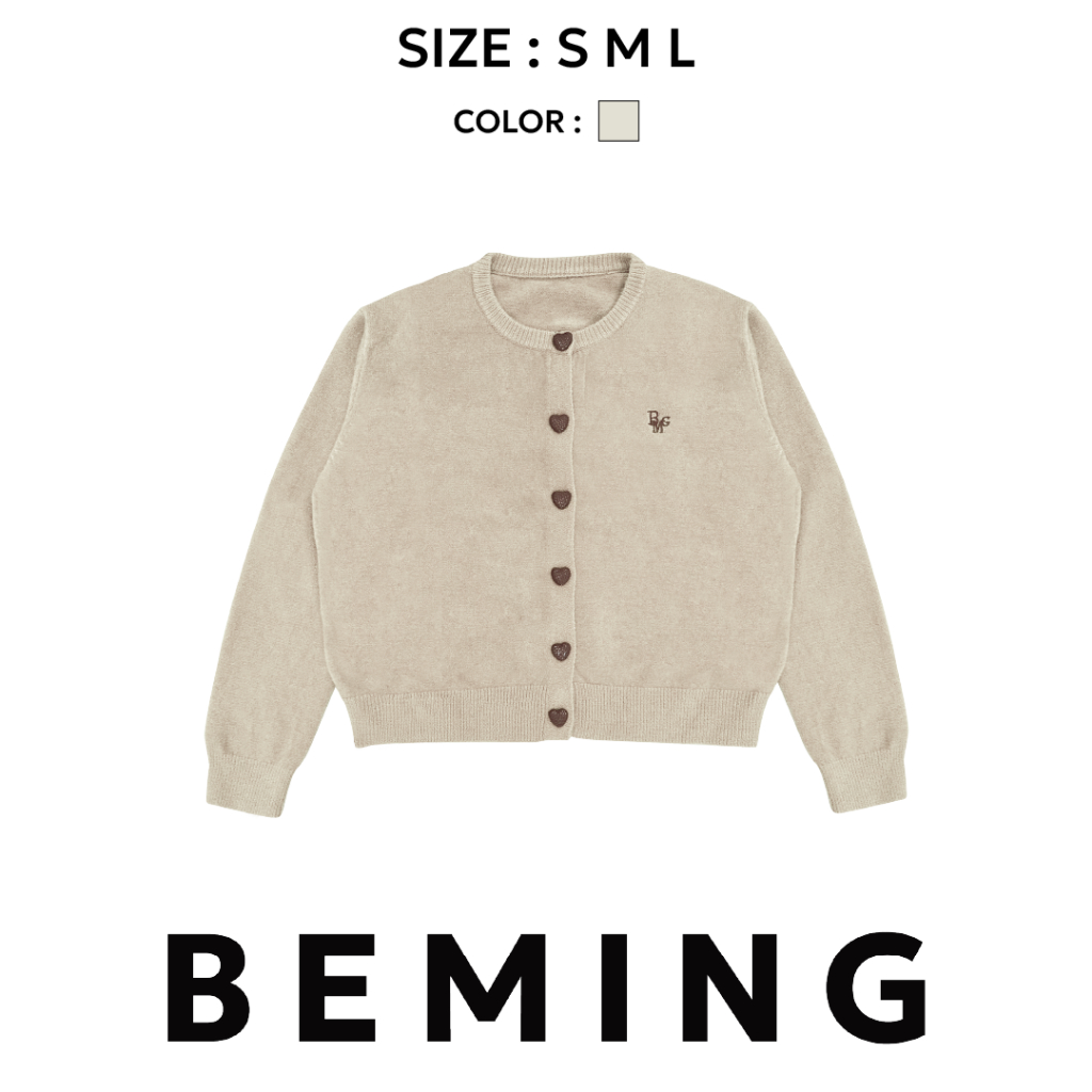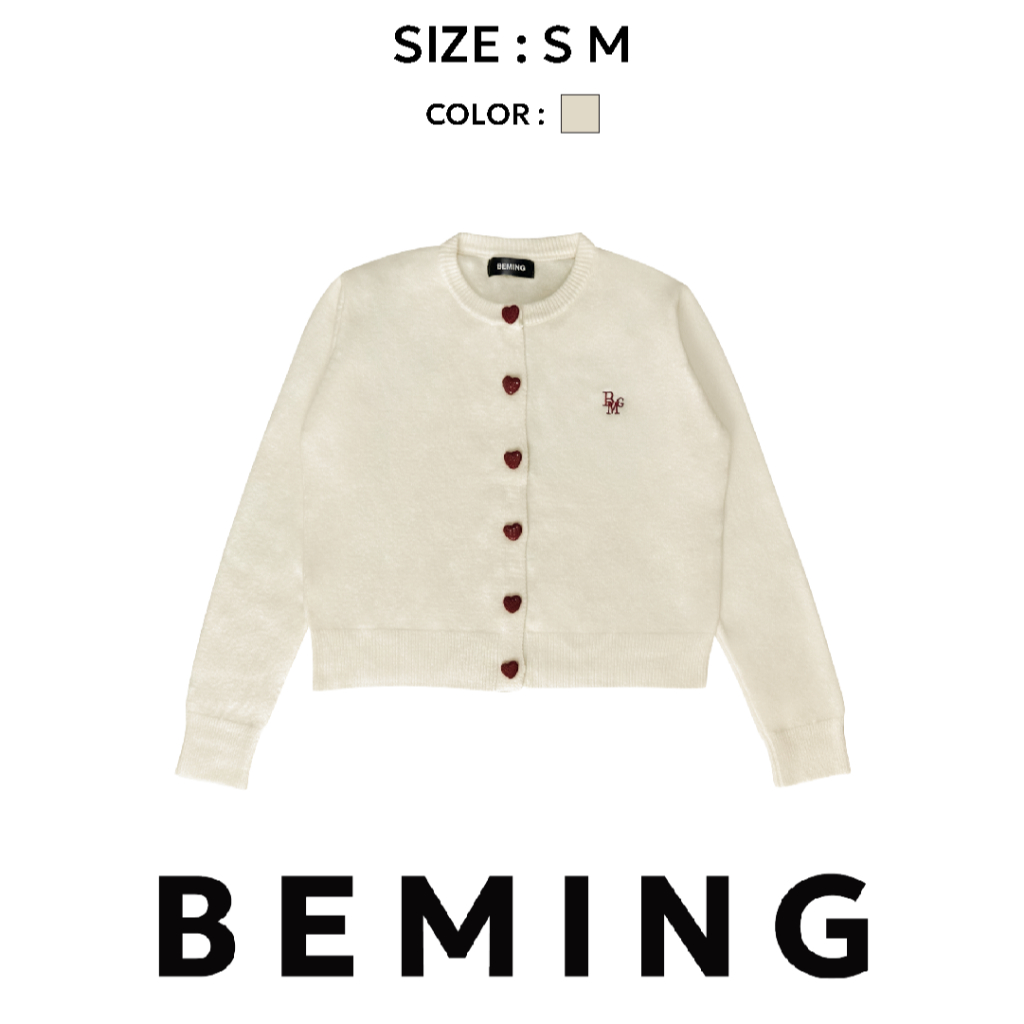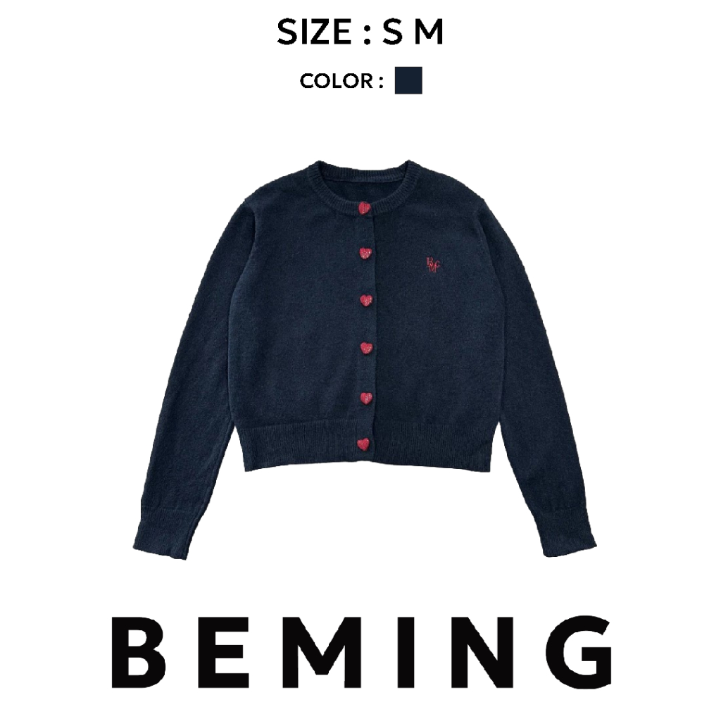 (พร้อมส่ง)Bemingtop667(S-L) - BMG knit Cardigan Ver.5 ผ้าลูกฟู ก ดีเทลกระดุมหัวใจสีแดง