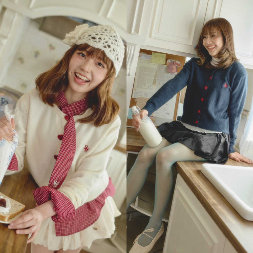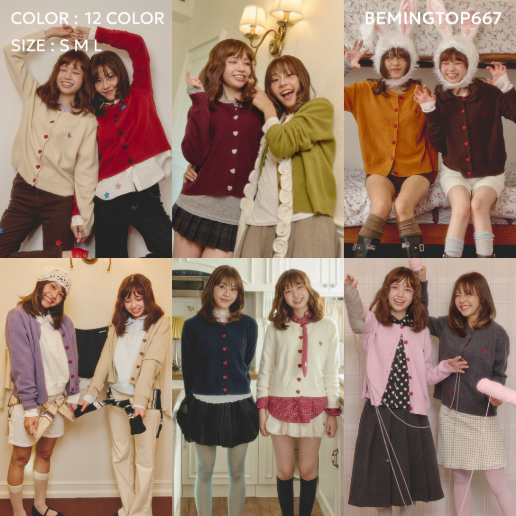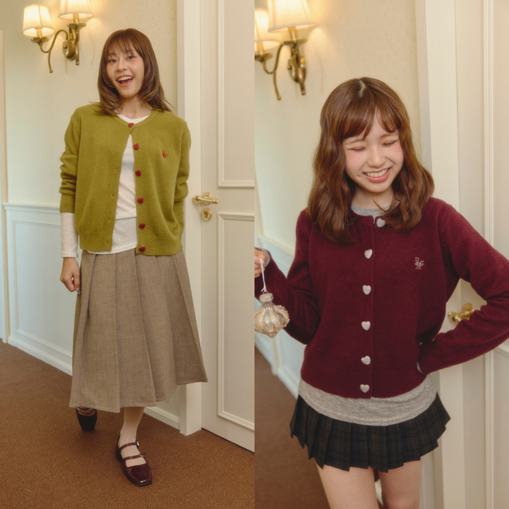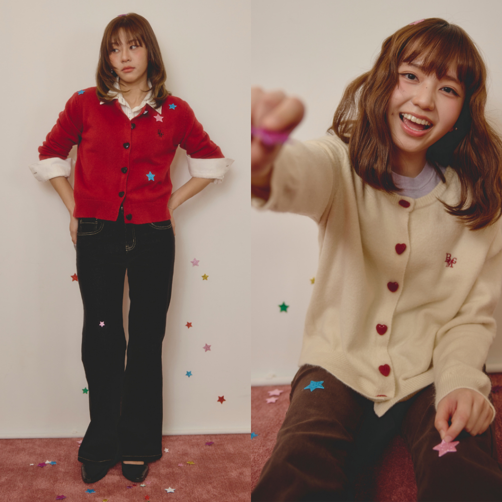 (พร้อมส่ง)Bemingtop667(S-L) - BMG knit Cardigan Ver.5 ผ้าลูกฟู ก ดีเทลกระดุมหัวใจสีแดง
