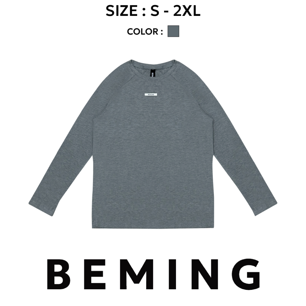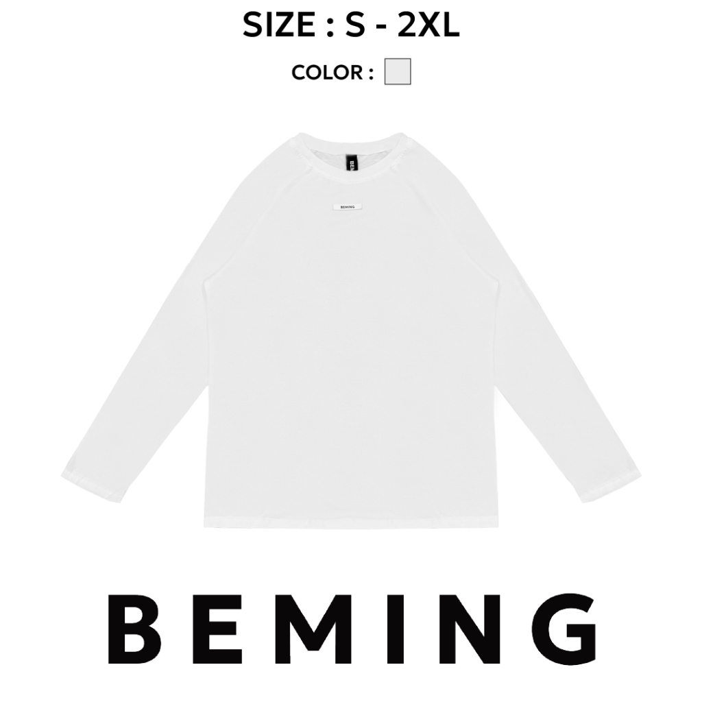Bemingtop1078(S-2XL)-BMG Crew Neck Tee - เสื้อแขนยาวคอกลมสไตล์มินิมอล โทนเรียบ ปักป้ายโลโก้ BEMING