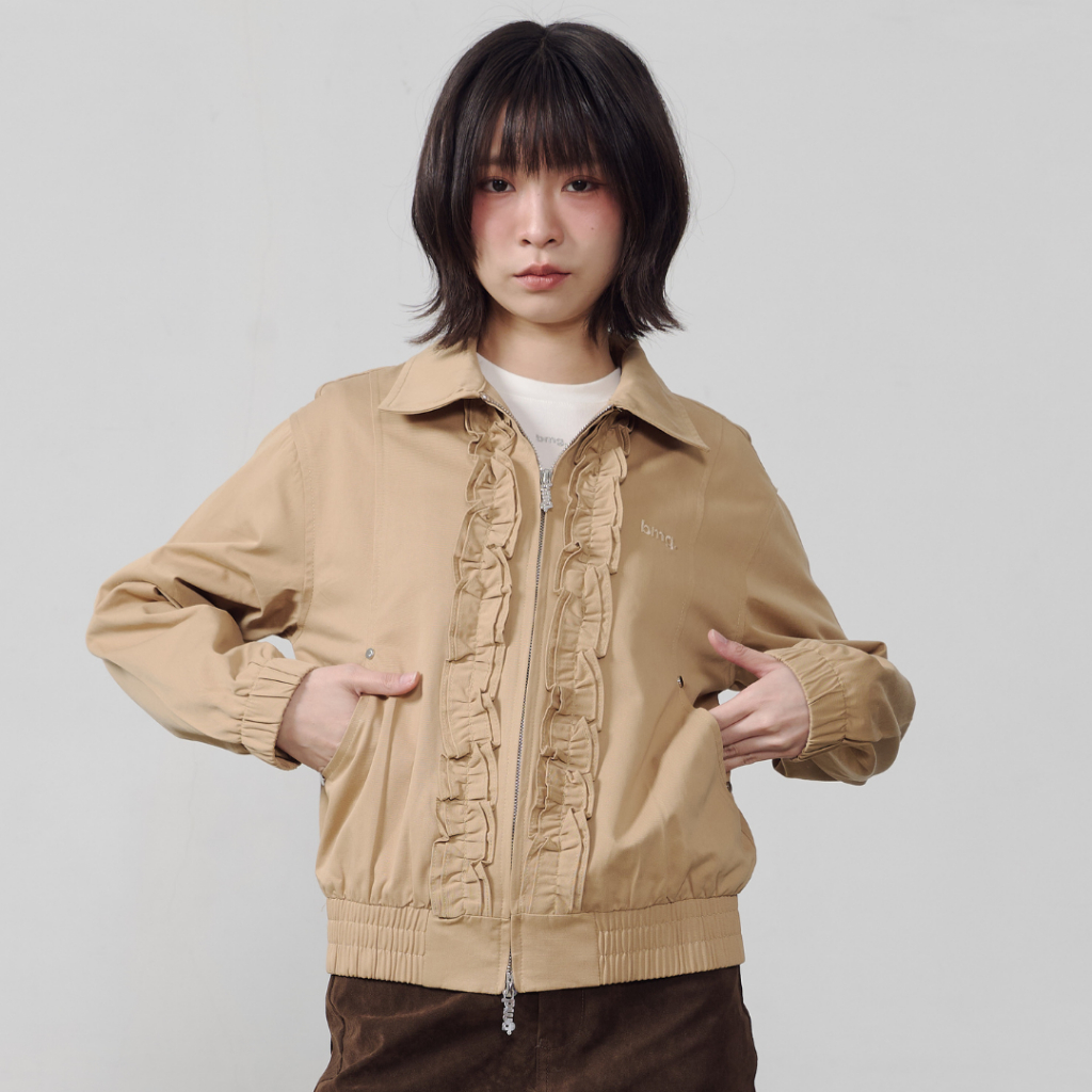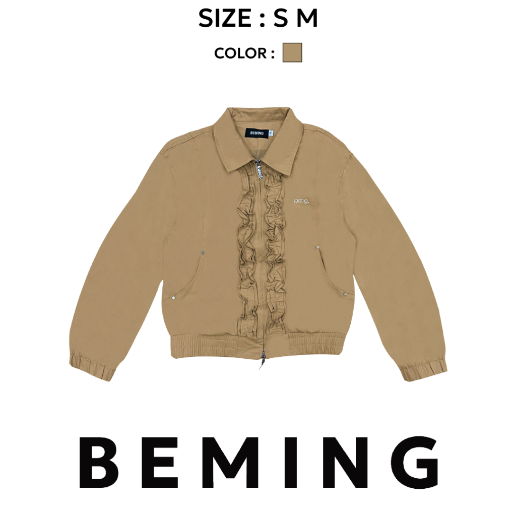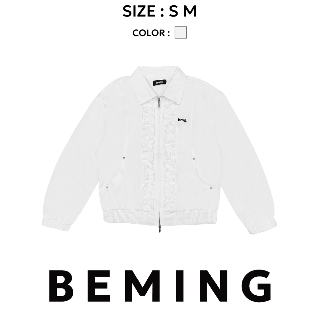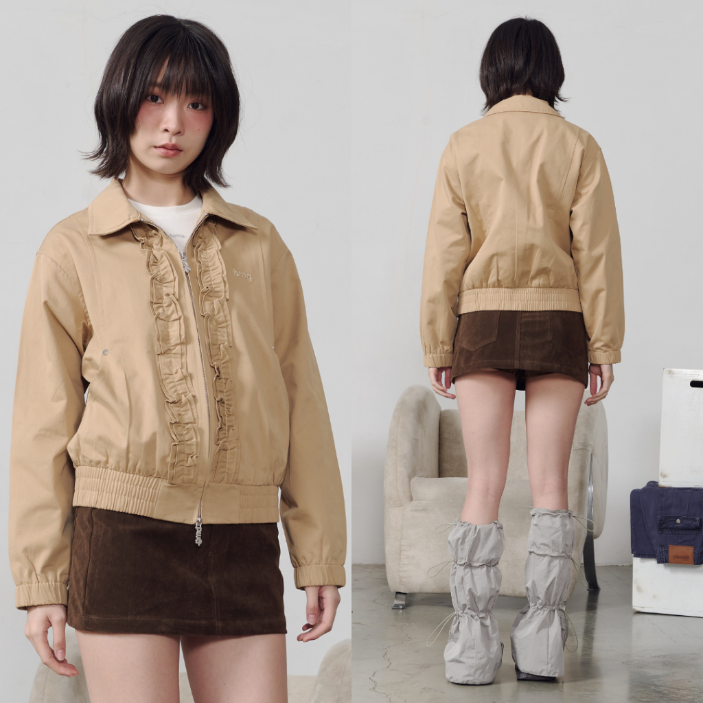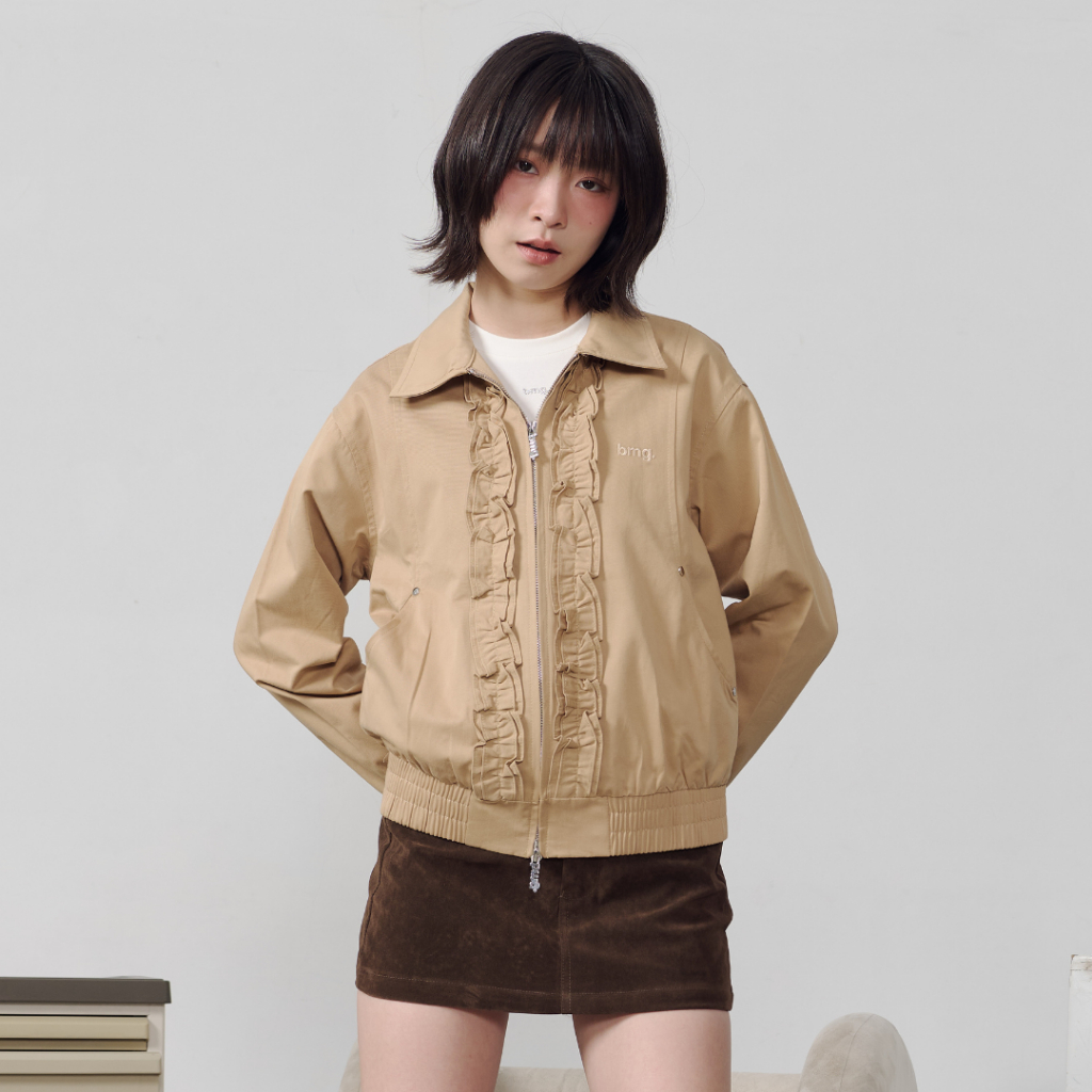 Bemingtop1079(S-M)-BMG Ruffle Zip Bomber - แจ็กเก็ตทรงบอมเบอร์ ดีเทลระบาย (Ruffle) ด้านหน้าและดีเทลซิปที่เป็น BEMING