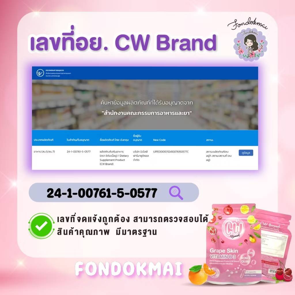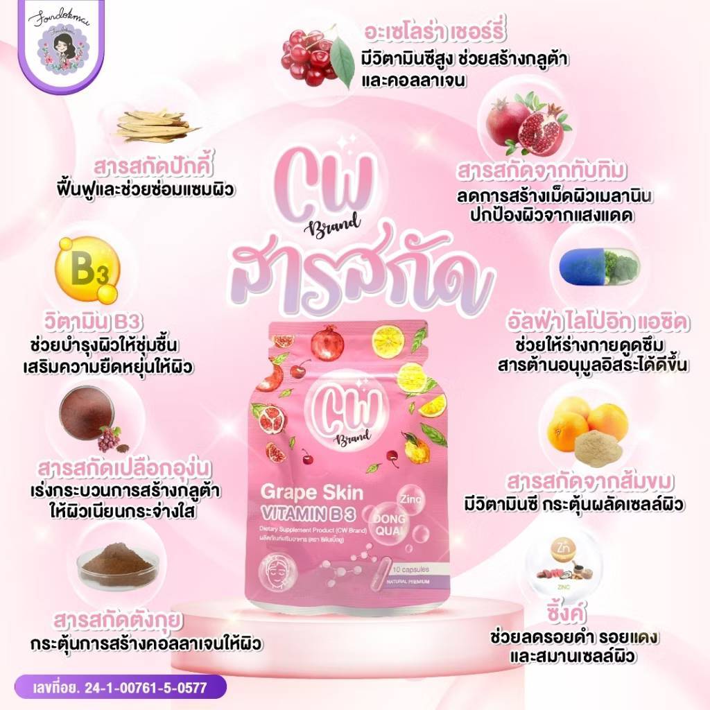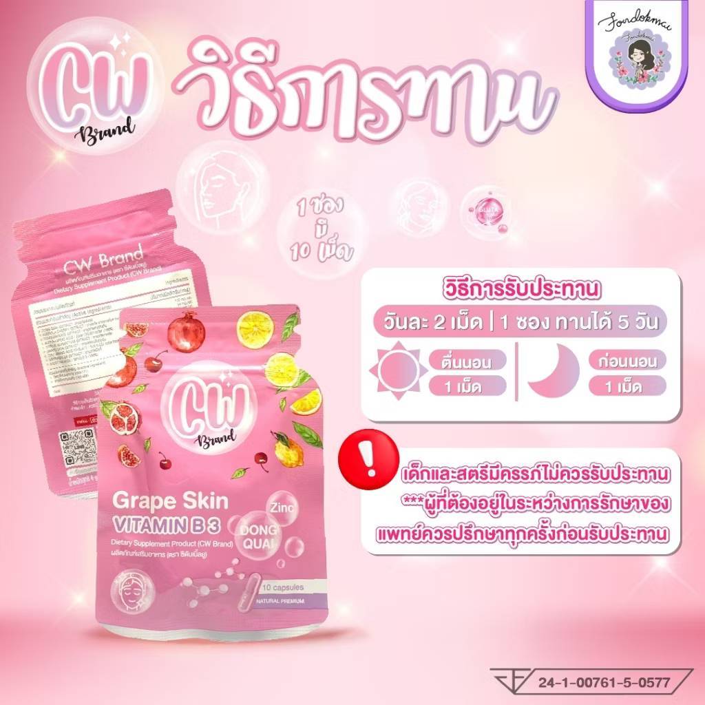 ผลิตภัณฑ์อาหารเสริม CW วิตามินผิวขาวพี่ฝน 1 ซอง มี 10แคปซูน