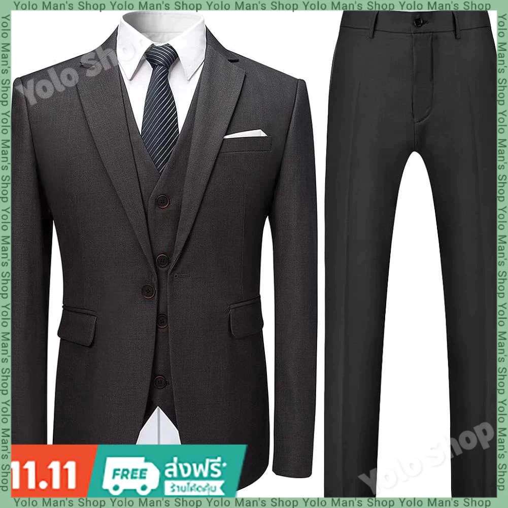 【2 ชิ้น】ชุดสูทผู้ชายเซ็ท สูท + กางเกงขายาว