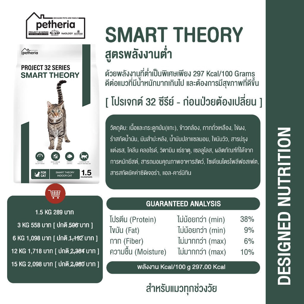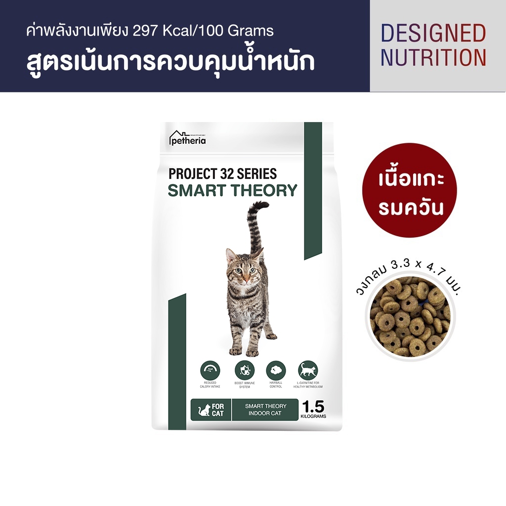 SMART THEORY อาหารแมวสูตรเน้นการควบคุมนํ้าหนัก PROJECT 32 SERIES จากเพ็ทเทอเรีย [ SMT ]