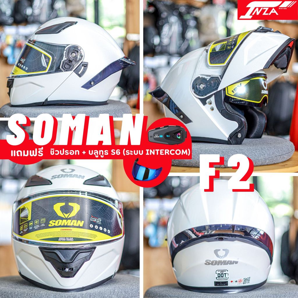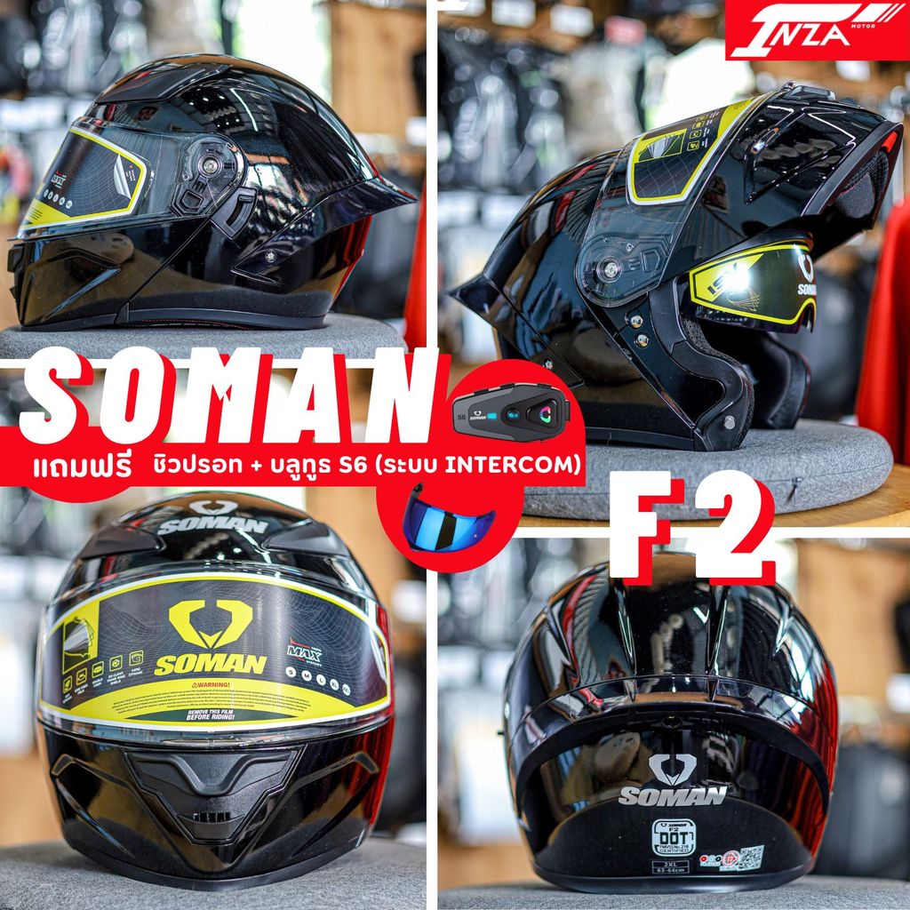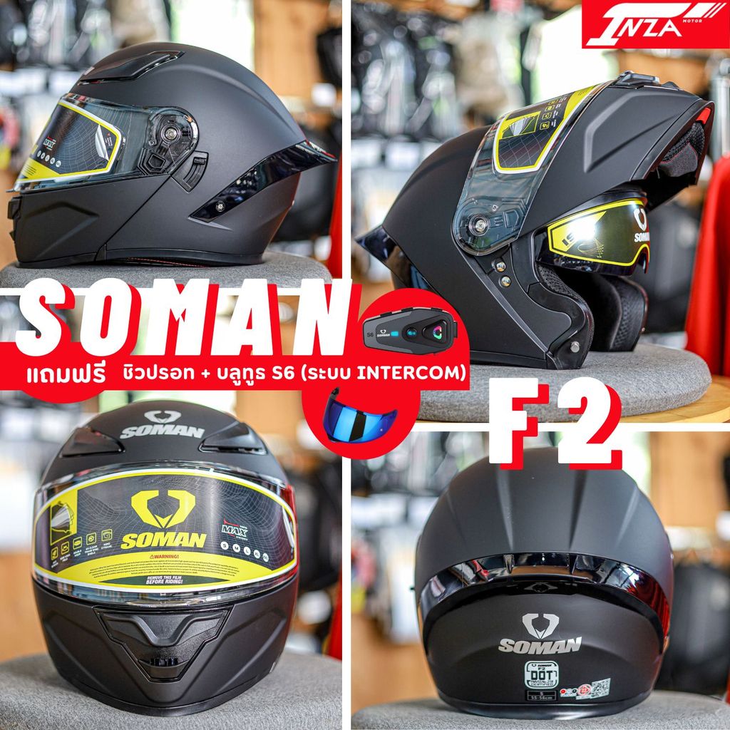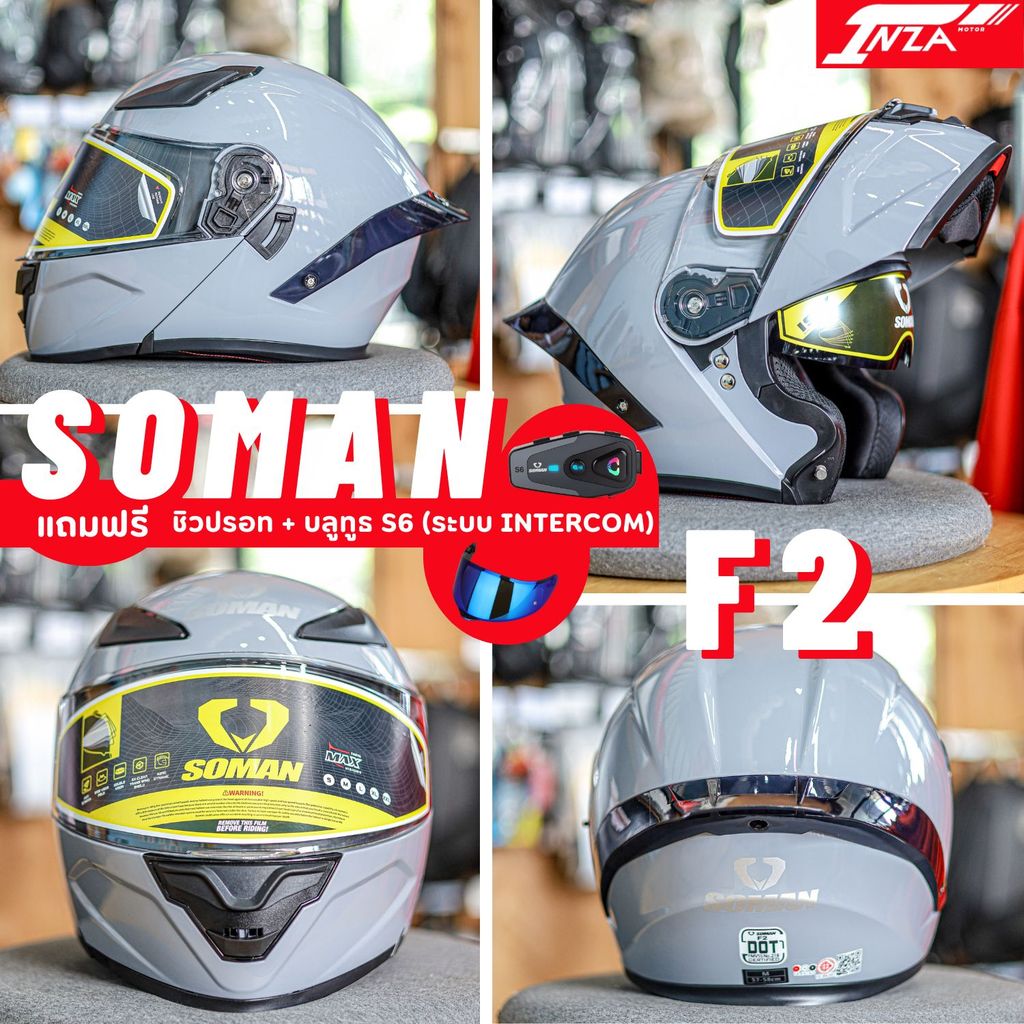 (เซ็ทบลูทูธ S6 INTERCOM+ชิลด์ปรอท) หมวกกันน็อคเปิดคาง SOMAN HELMETS F2 แว่นด้านใน 2 ชั้น