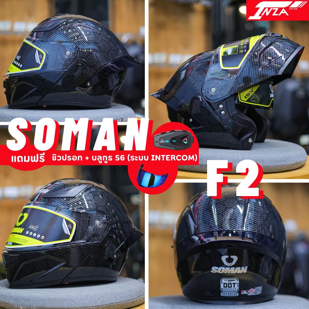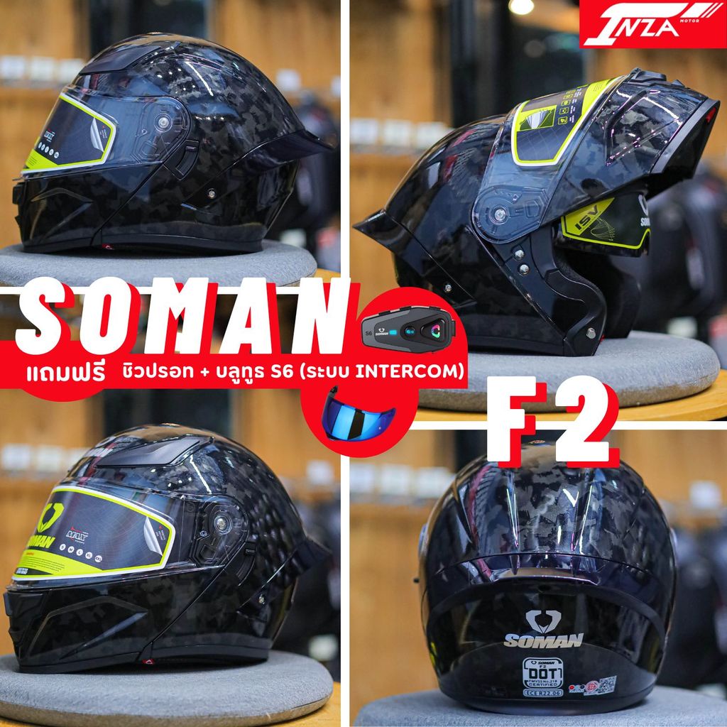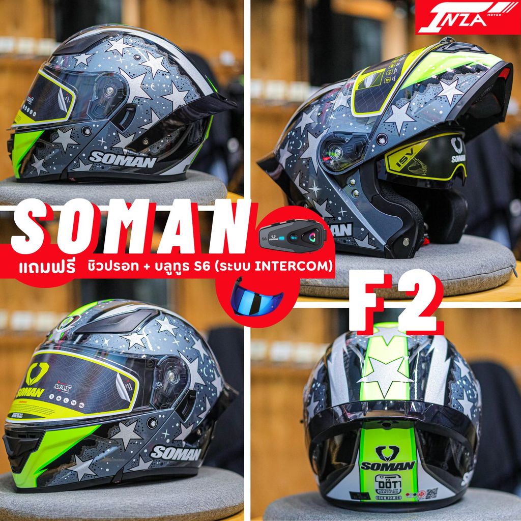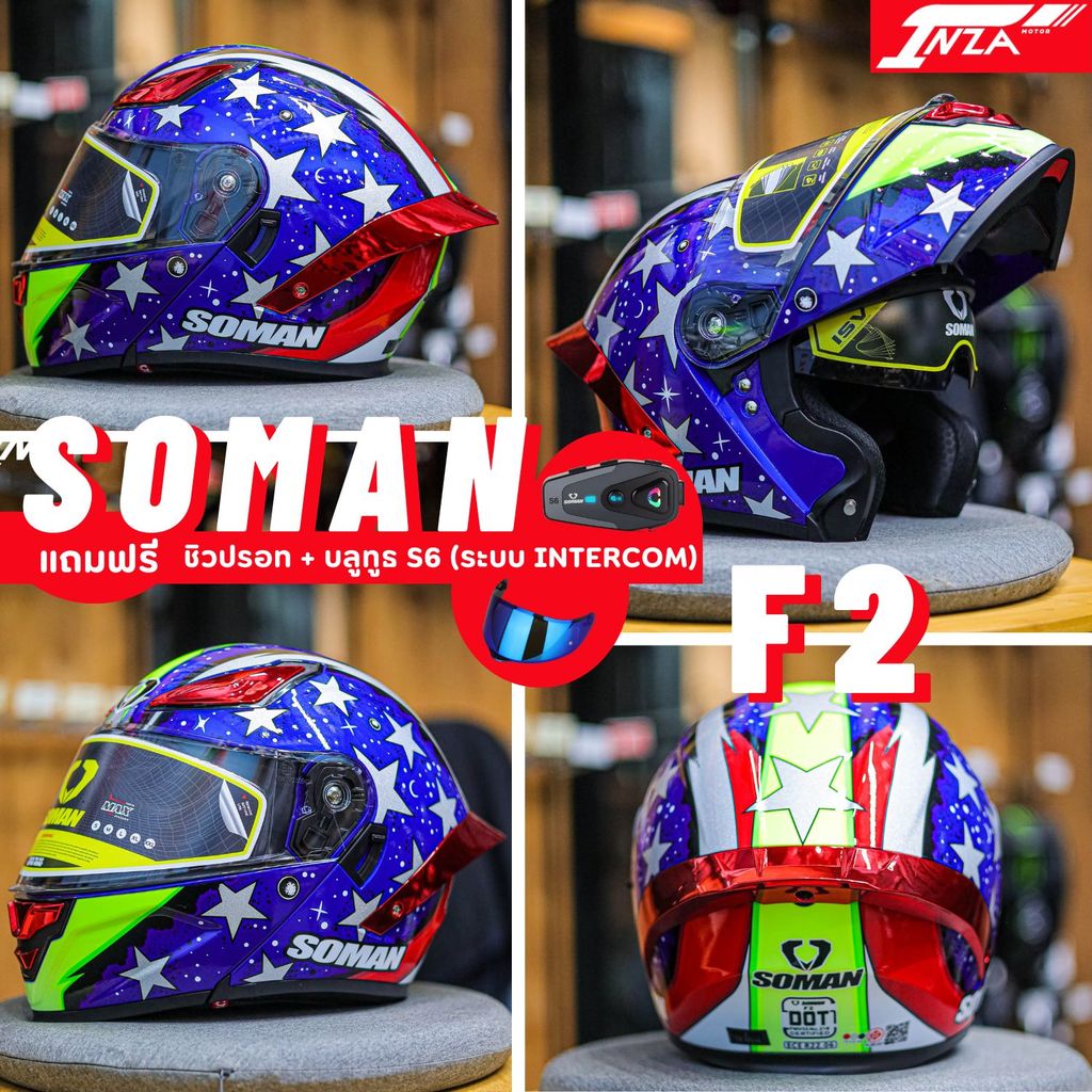 (เซ็ทบลูทูธ S6 INTERCOM+ชิลด์ปรอท) หมวกกันน็อคเปิดคาง SOMAN HELMETS F2 แว่นด้านใน 2 ชั้น