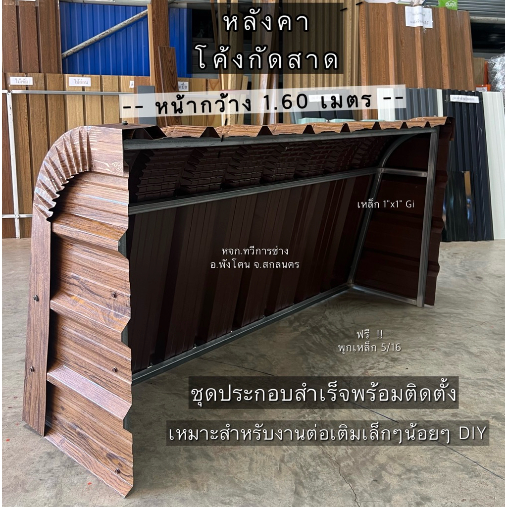 หลังคาเมทัลชีท ชุดประกอบสำเร็จแผ่นโค้งกันสาด กันฝนสาด ต่อเติม DIY หน้ากว้าง1.60 ม.x 80 ซม.