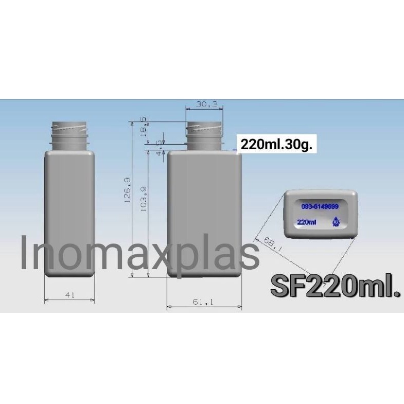 ขวดPET220ml. ขวดแบนเหลี่ยม #ทรงกล่องนม 50ใบ- สินค้าพลาสติกหนาเป็นพิเศษถึง30กรัม(SF220ML)