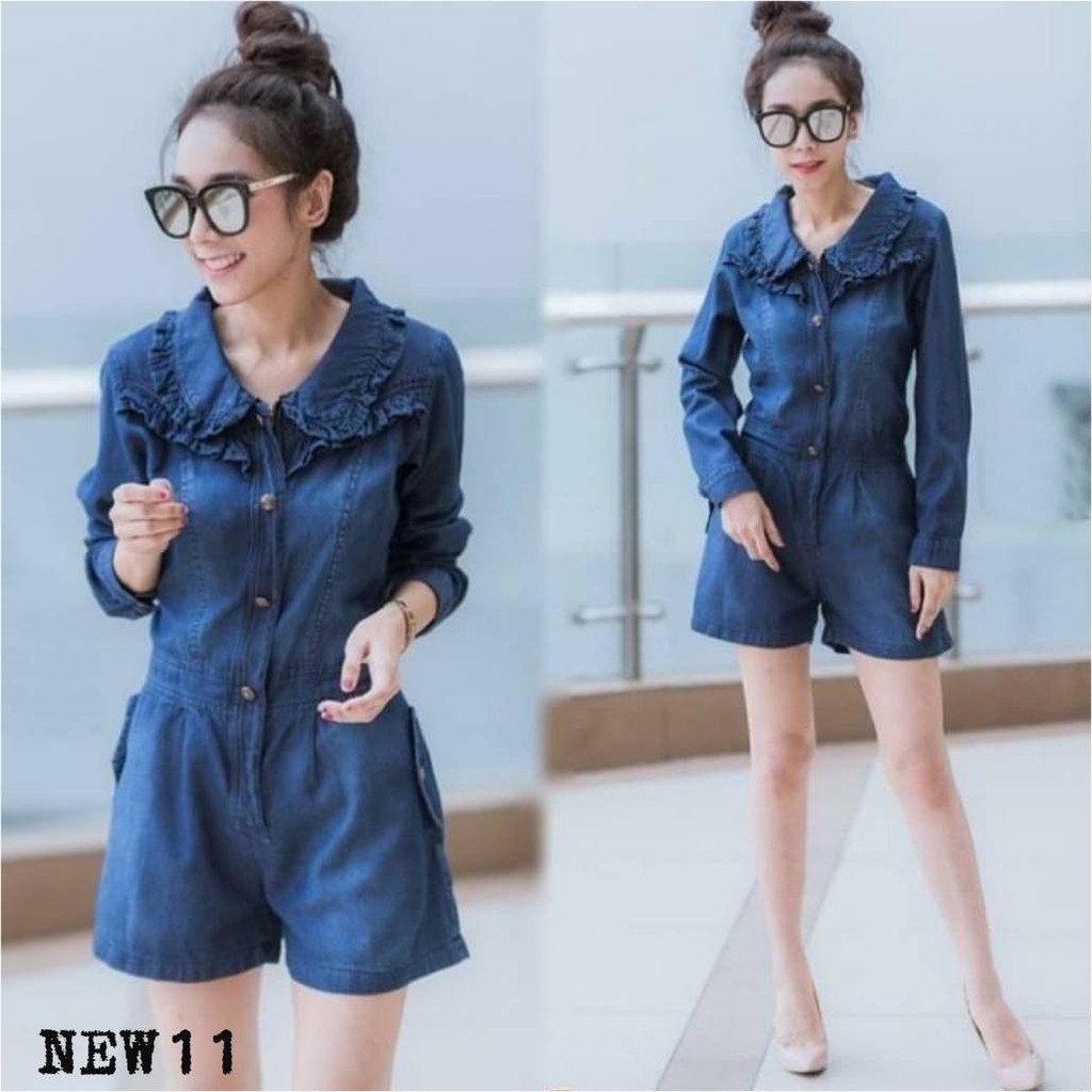 ชุดยีนส์ จั้มสูท จั้มสูทยีนส์ขาสั้น แขนยาวอกคอแต่งระบายเก๋ๆ ซิปหน้าแต่งกระดุมซ่อน มีกระเป๋าใช้งานได้จริง New11