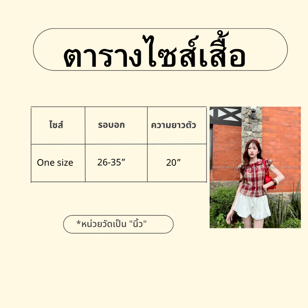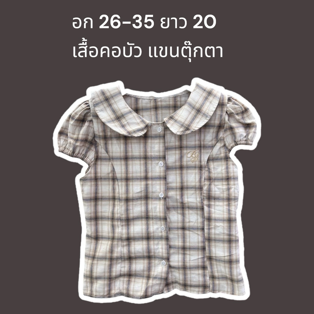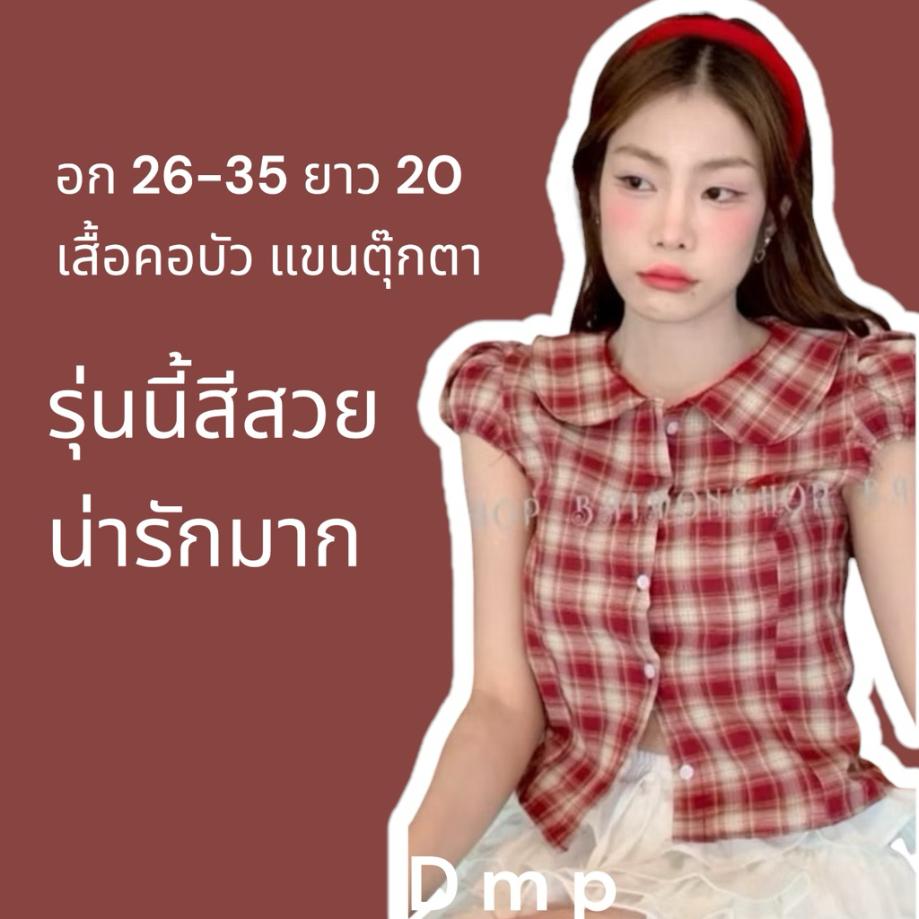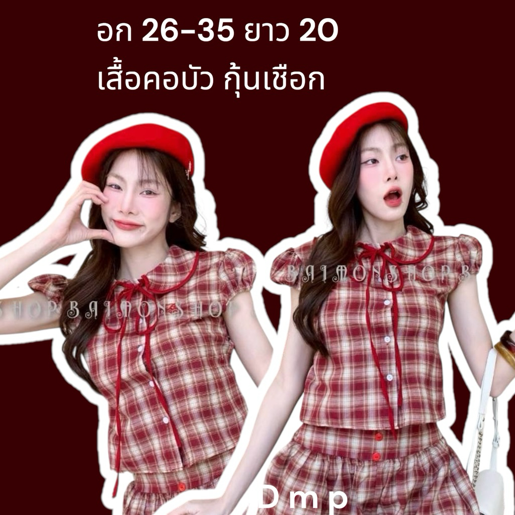 ambellaพร้อมส่ง เสื้อคอบัวลายสก็อตสายแต่งผูกอกงานน่ารักมากทรงเข้ารูปใส่แล้วสวย