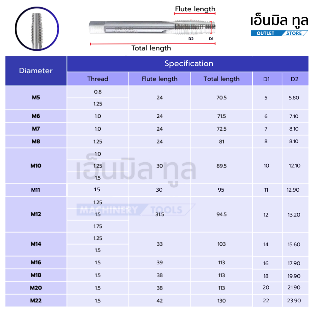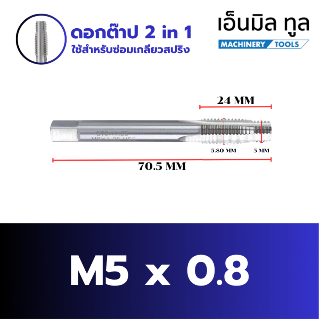 TAP ดอกต๊าป 2 in 1 เจาะและต๊าปในดอกเดียว ดอกต๊าปใช้สำหรับซ่อมเกลียวสปริง (ราคา/ชิ้น)