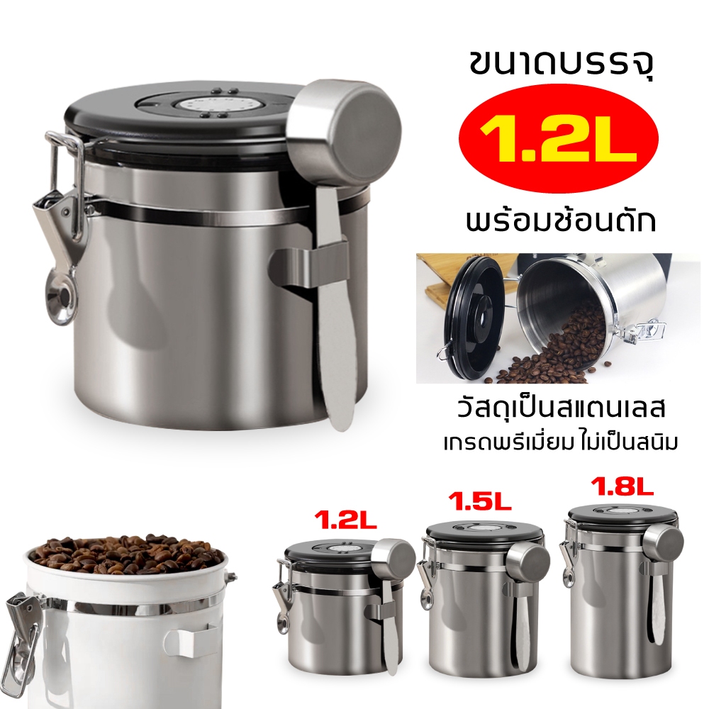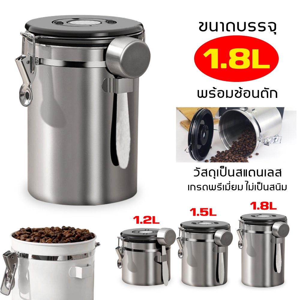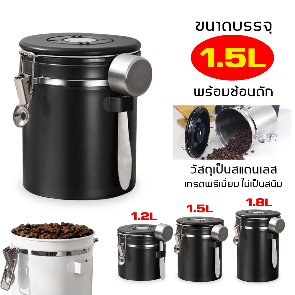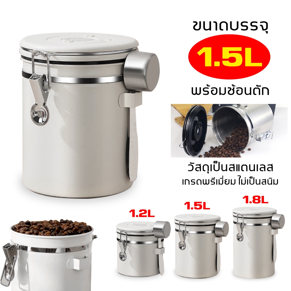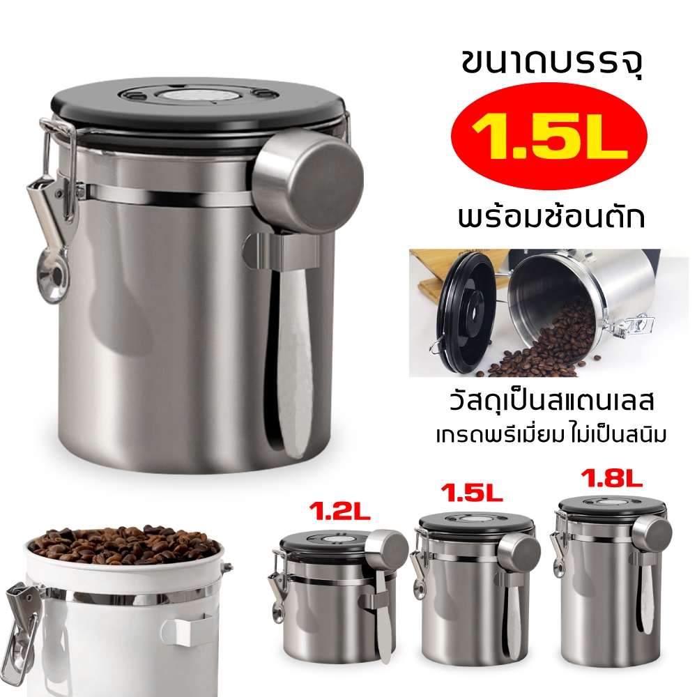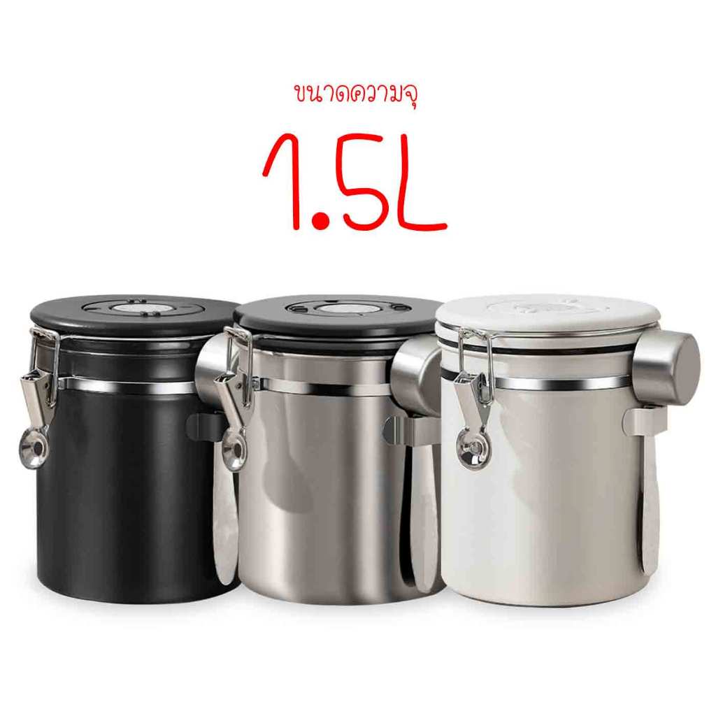 1.5L กล่องเก็บเมล็ดกาแฟ กระป๋องเก็บกาแฟ โถเก็บเมล็ดกาแฟ สแตนเลส ขนาด สูญญากาศ กันความชื้นโหลสแตนเลส ใส่กาแฟ พร้อมส่ง