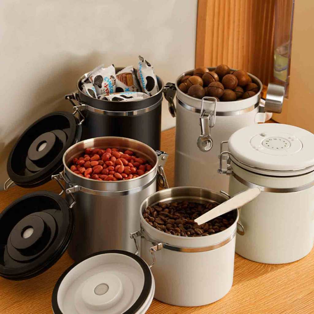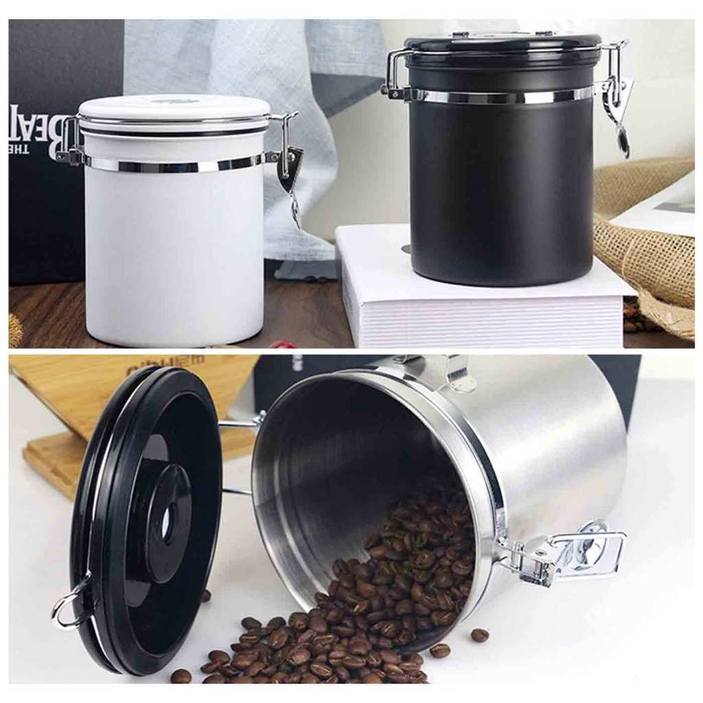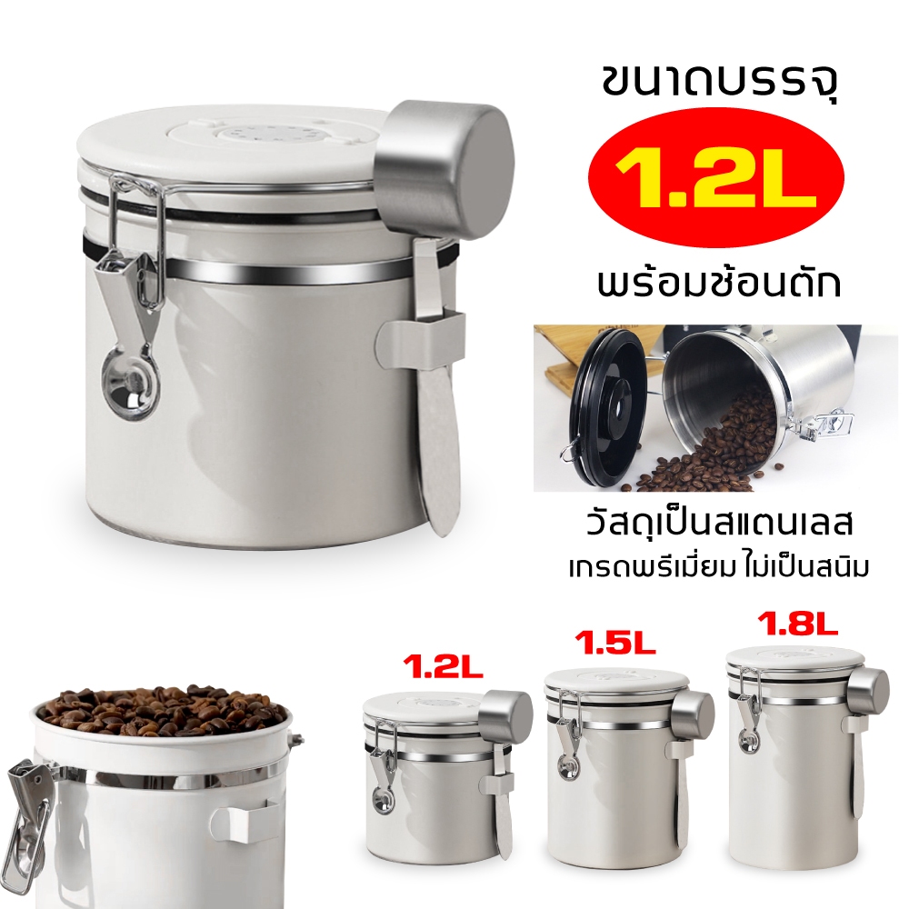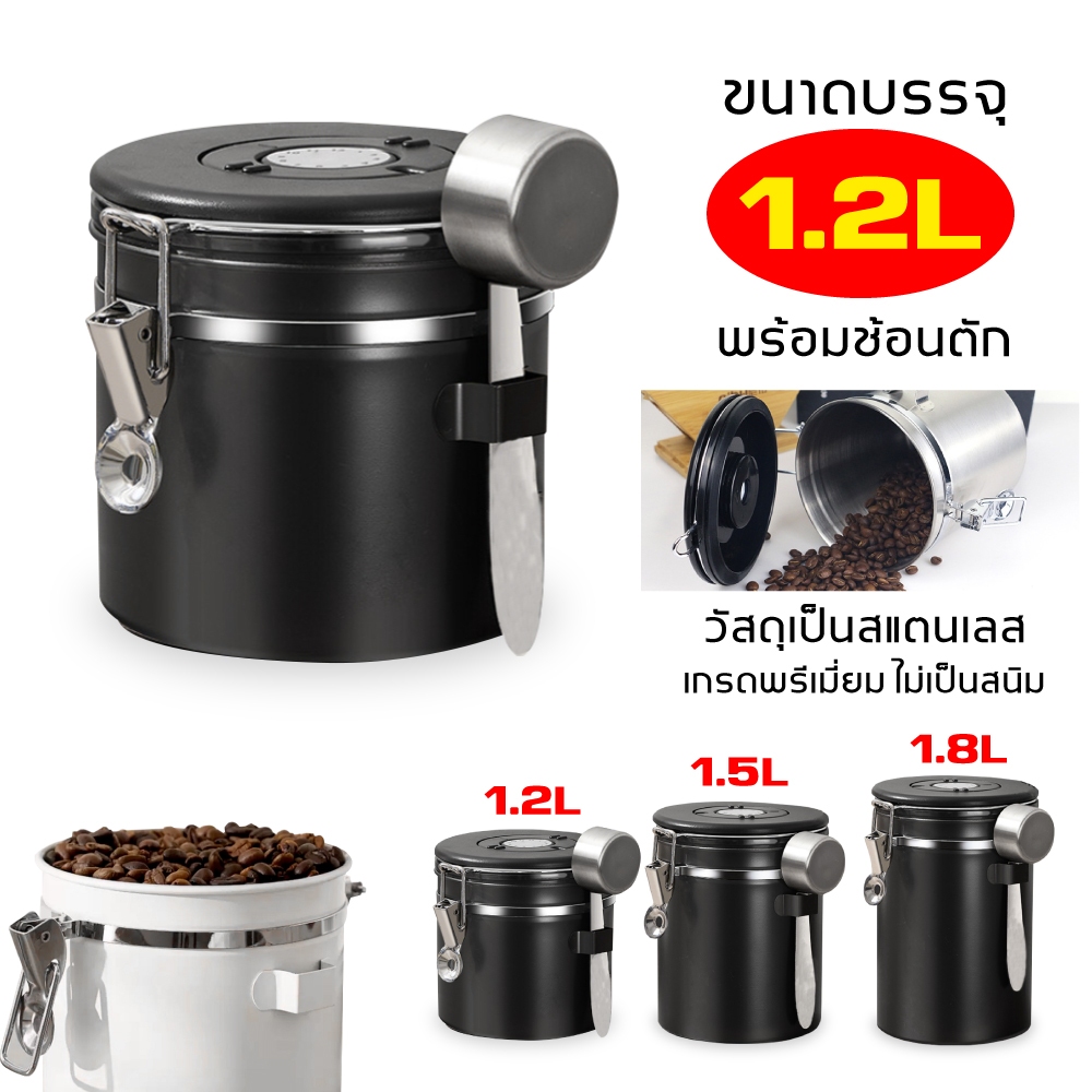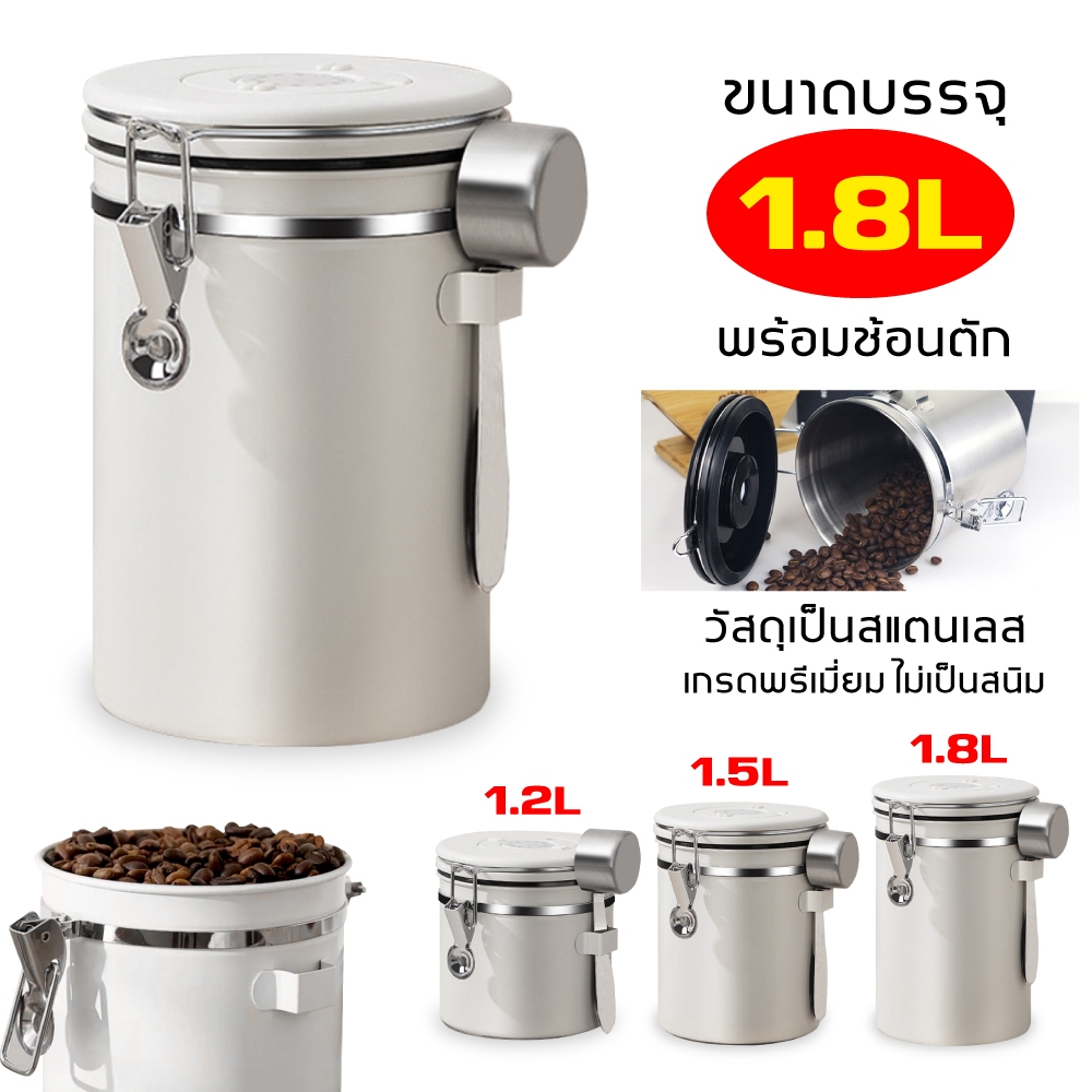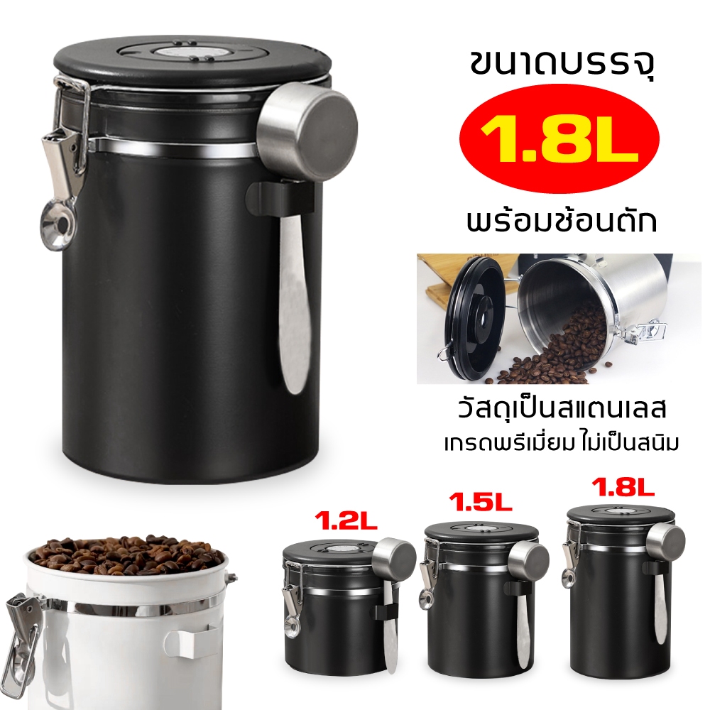 1.5L กล่องเก็บเมล็ดกาแฟ กระป๋องเก็บกาแฟ โถเก็บเมล็ดกาแฟ สแตนเลส ขนาด สูญญากาศ กันความชื้นโหลสแตนเลส ใส่กาแฟ พร้อมส่ง