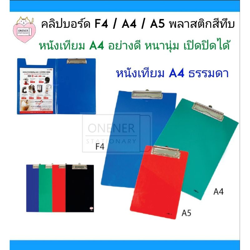 คลิปบอร์ด ( A4 / A5 / พลาสติกสีทึบ )( A4 หนังเทียมธรรมดา และแบบหนังอย่างดี หนานุ่ม มีฝาพับเปิดปิดได้ )