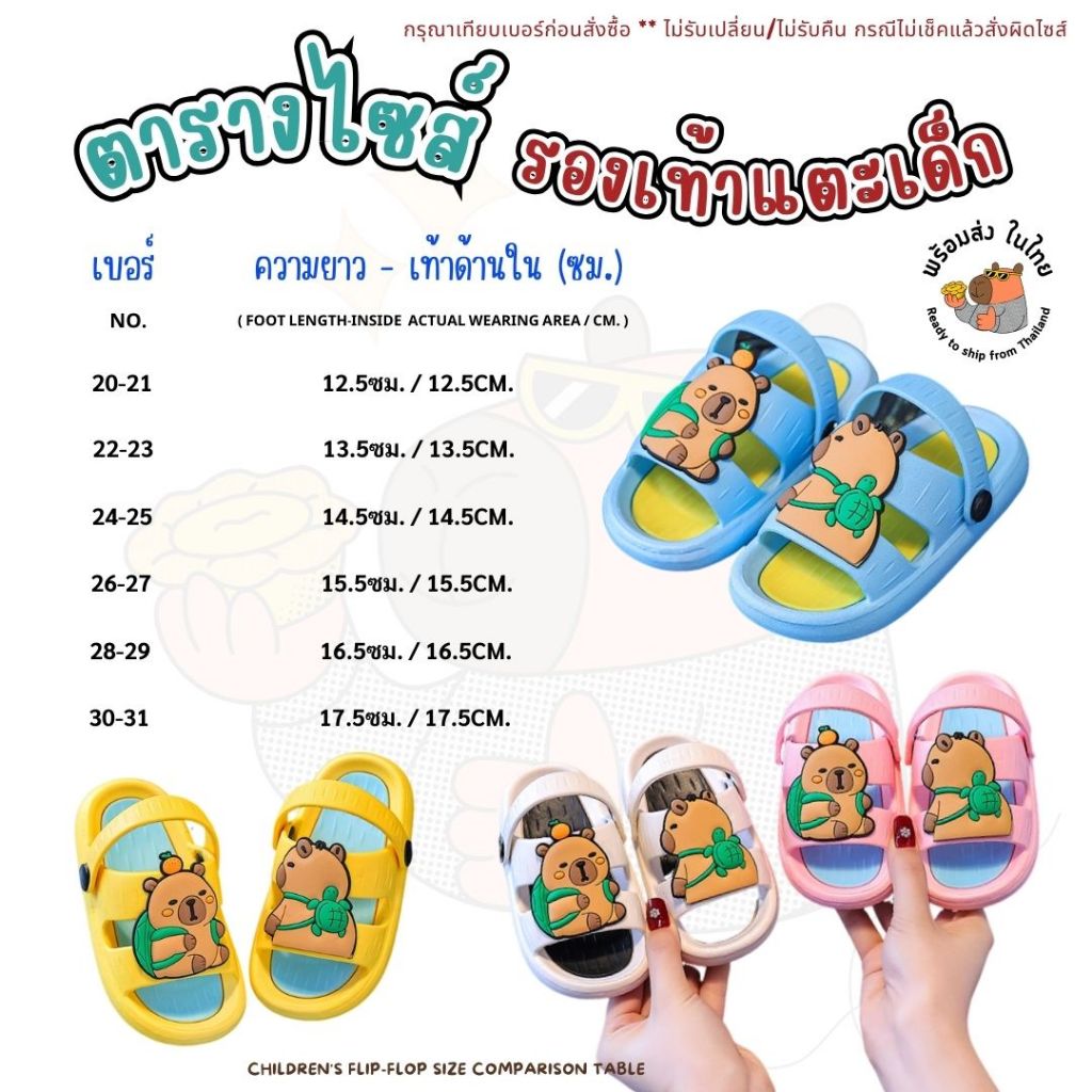พร้อมส่งในไทย ** รองเท้าแตะเด็กผู้ชาย รัดส้นเด็กผู้หญิง แต่งตัวการ์ตูนคาปิบาร่า พื้นมีกันลื่น นิ่ม ใส่สบาย