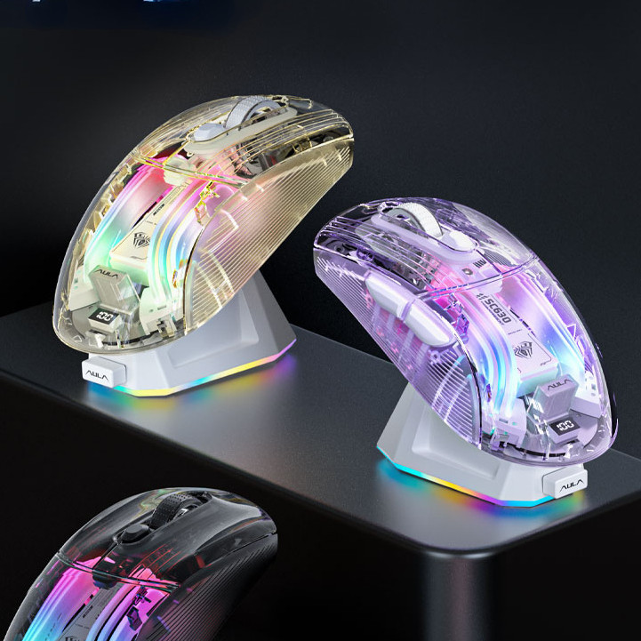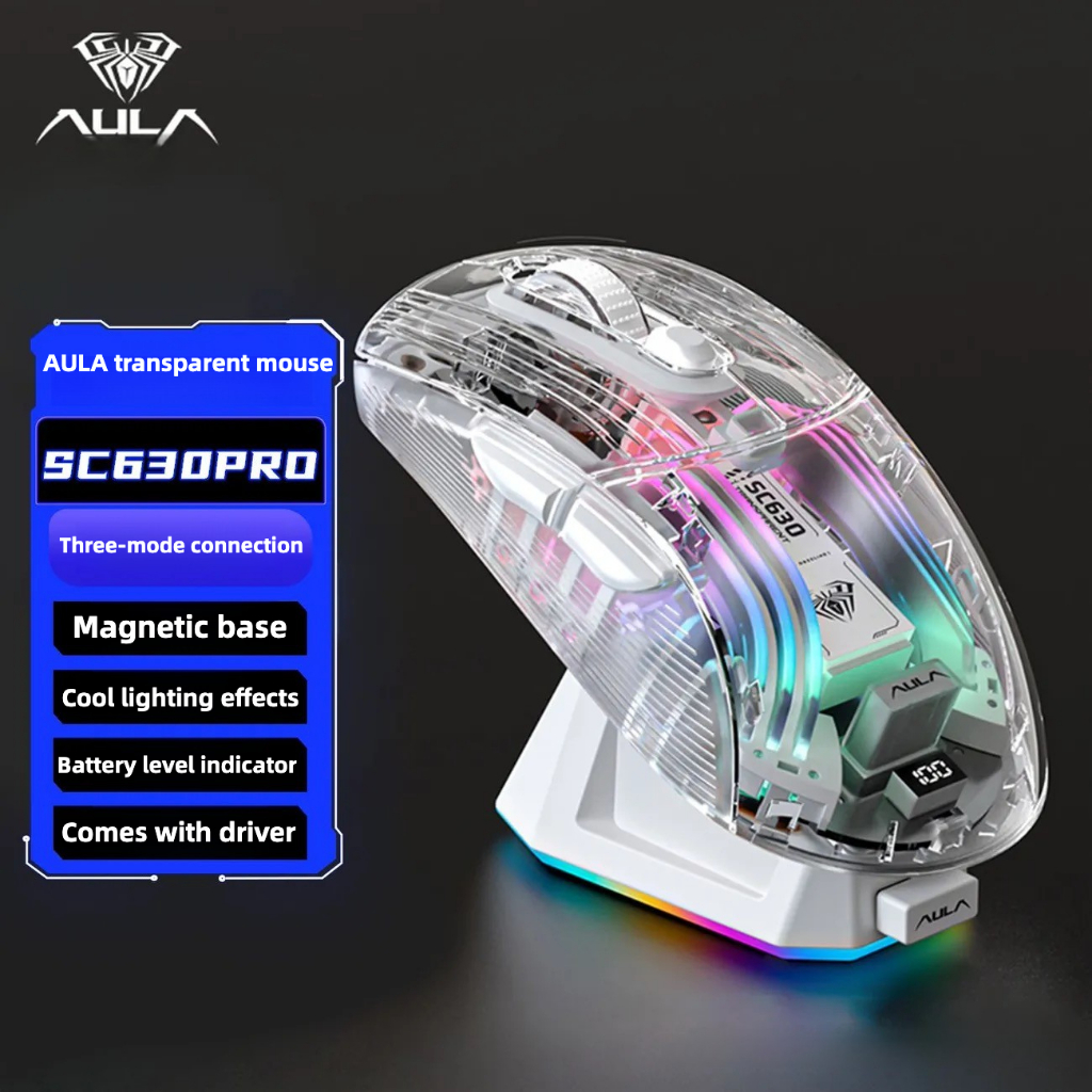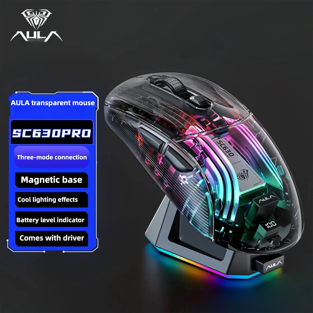 AULA SC630 SC630PRO เมาส์ไร้สายโปร่งใสแบบมีสาย 2.4G ไร้สายบลูทูธสํานักงานแล็ปท็อปสําหรับเล่นเกม E-sports พิเศษ