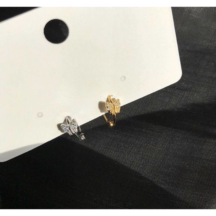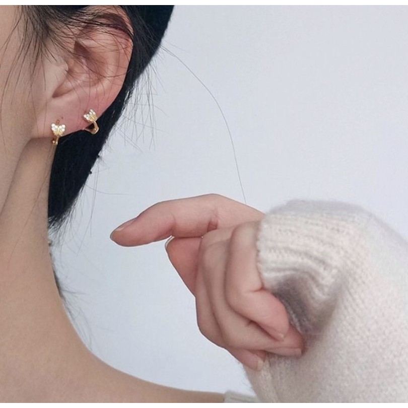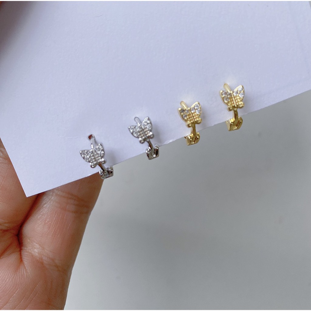 goodgift_station - ต่างหูเงินแท้ 925 ต่างหูแบบเจาะ ห่วงกลมแบบล็อคผีเสื้อ