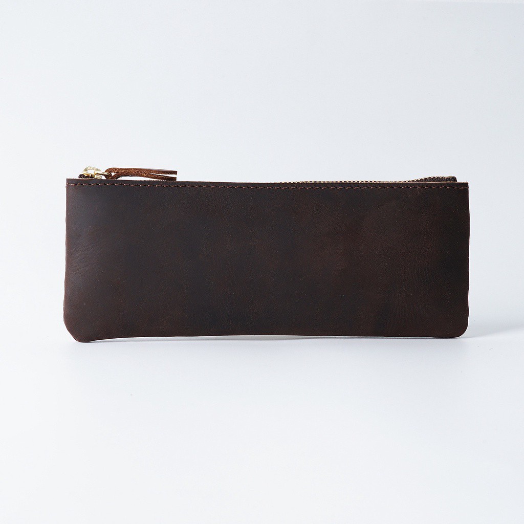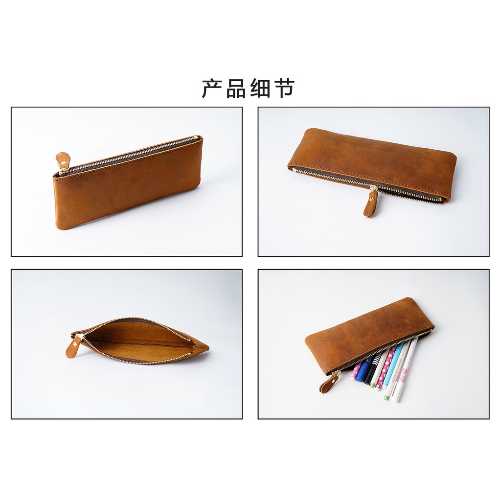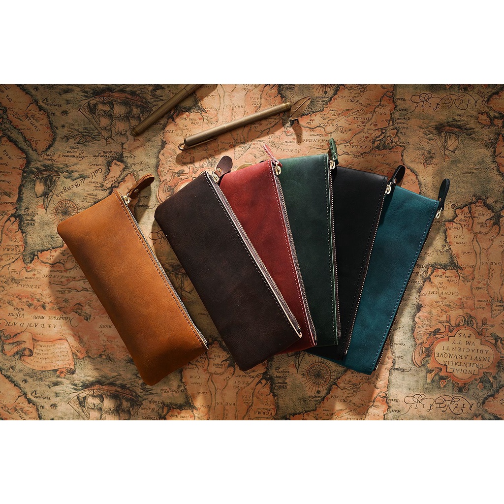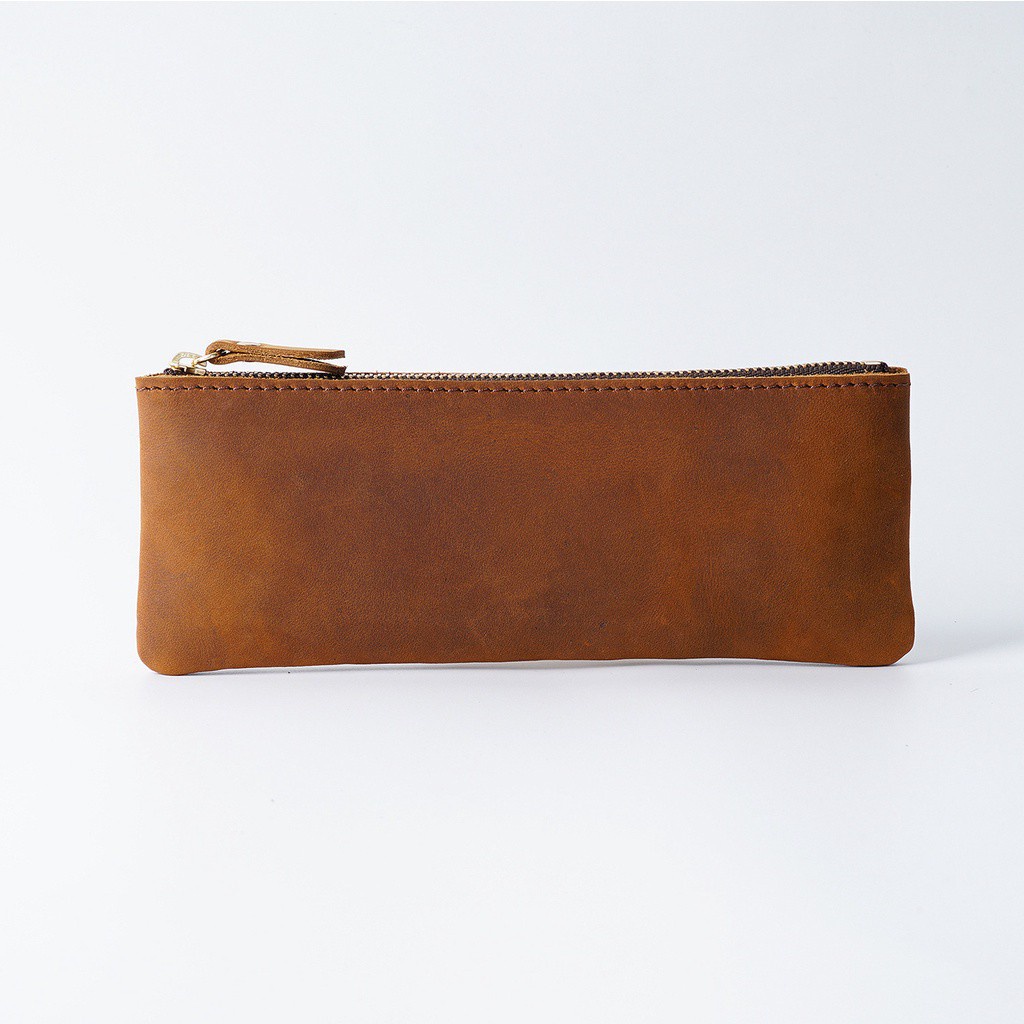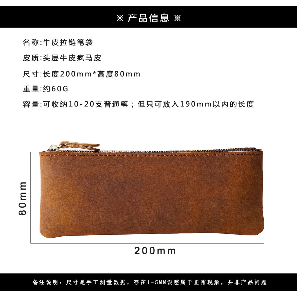 [ฟรี Lettering] Lmculture กระเป๋าดินสอกระเป๋าหนังวัวแท้มีซิปทรงสี่เหลี่ยมขนาดเล็ก