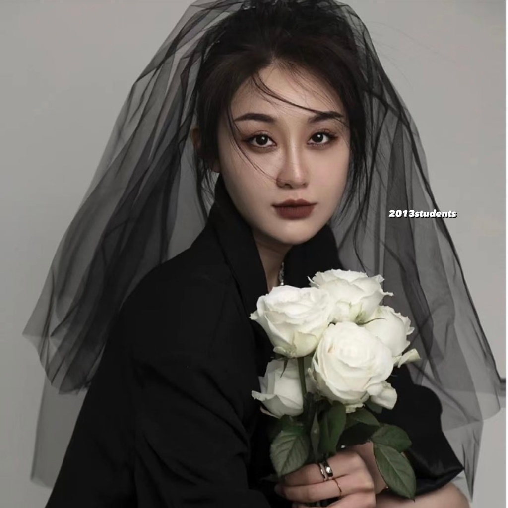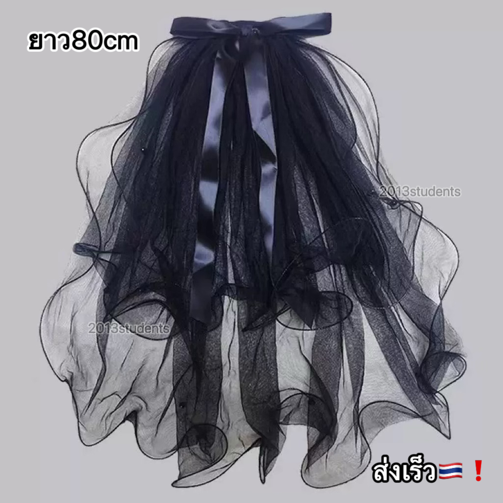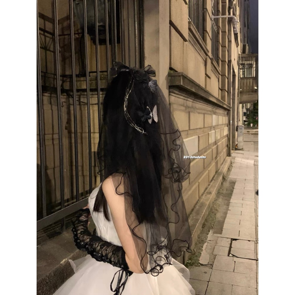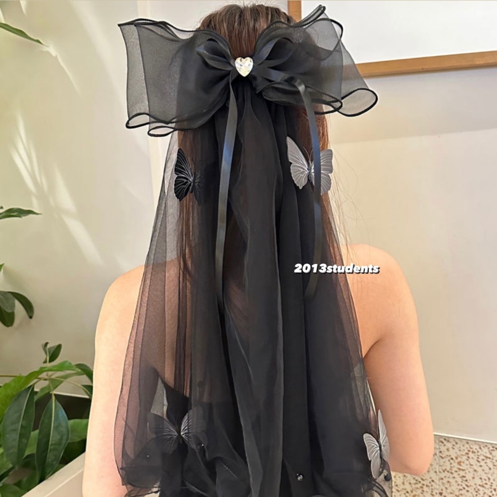 [ส่งเร็ว] เวลผีเสื้อดำลอยตัวมุกดำโบว์ผ้าแก้วเพขรหัวใจ เวลฮาโลวีนดำแบบหวี