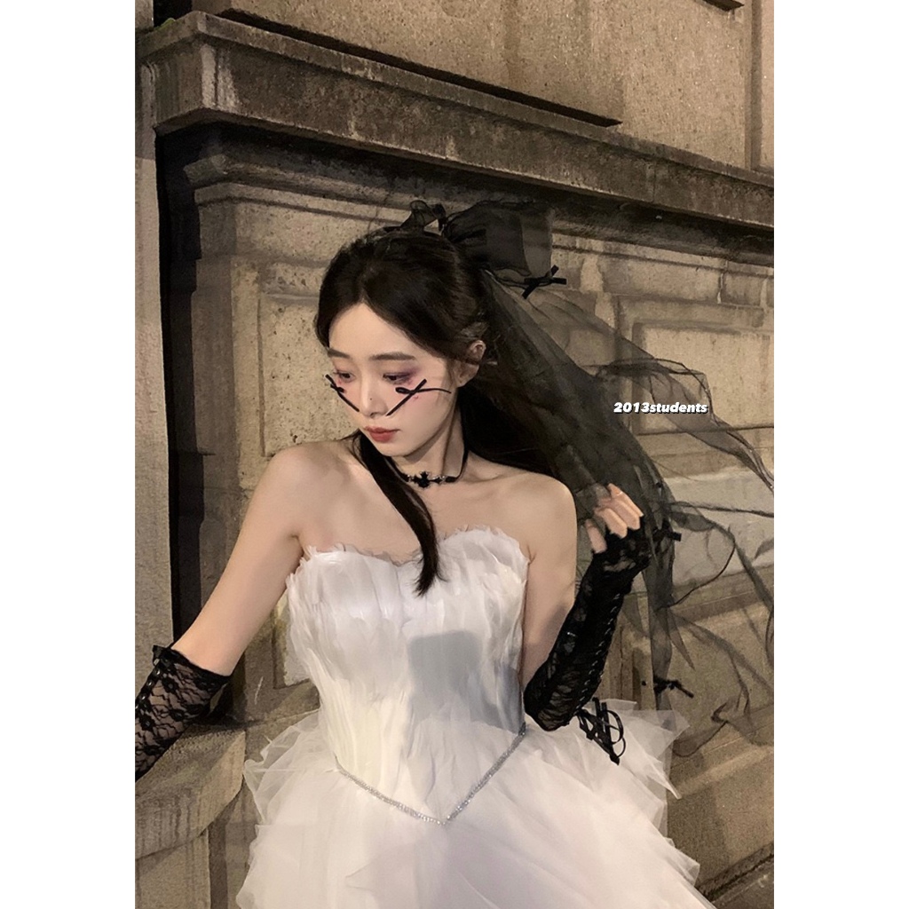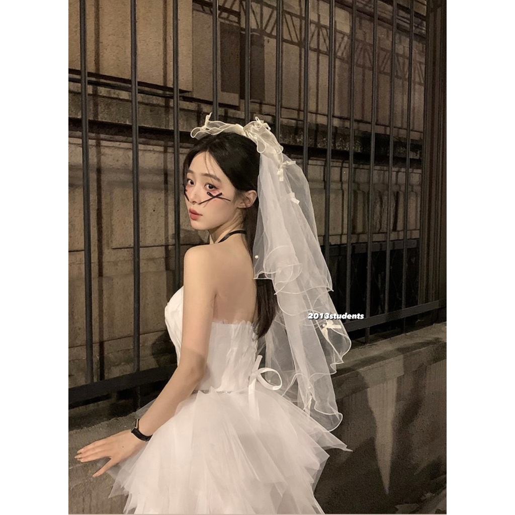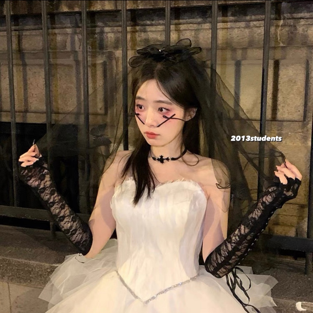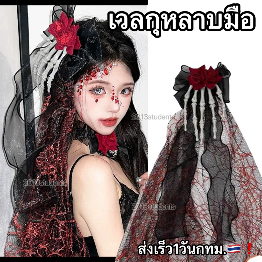 [ส่งเร็ว] เวลผีเสื้อดำลอยตัวมุกดำโบว์ผ้าแก้วเพขรหัวใจ เวลฮาโลวีนดำแบบหวี