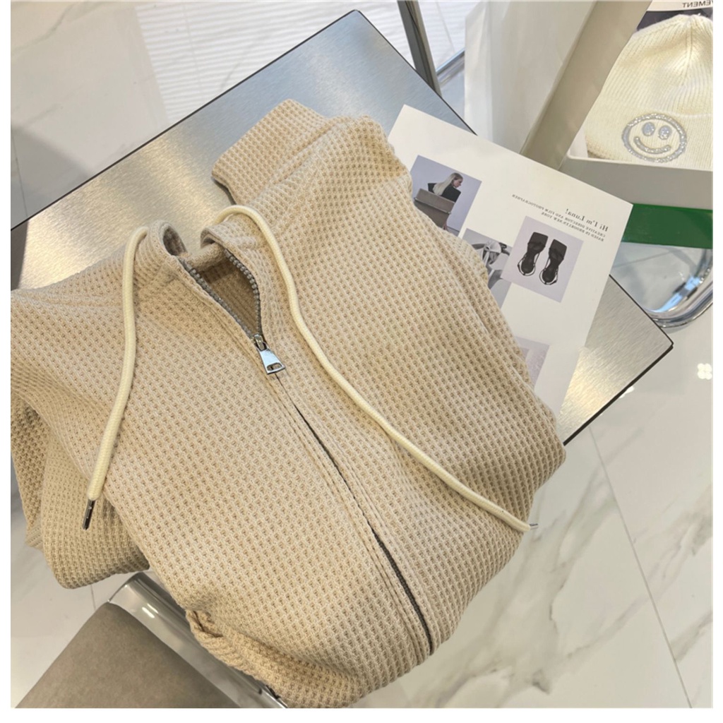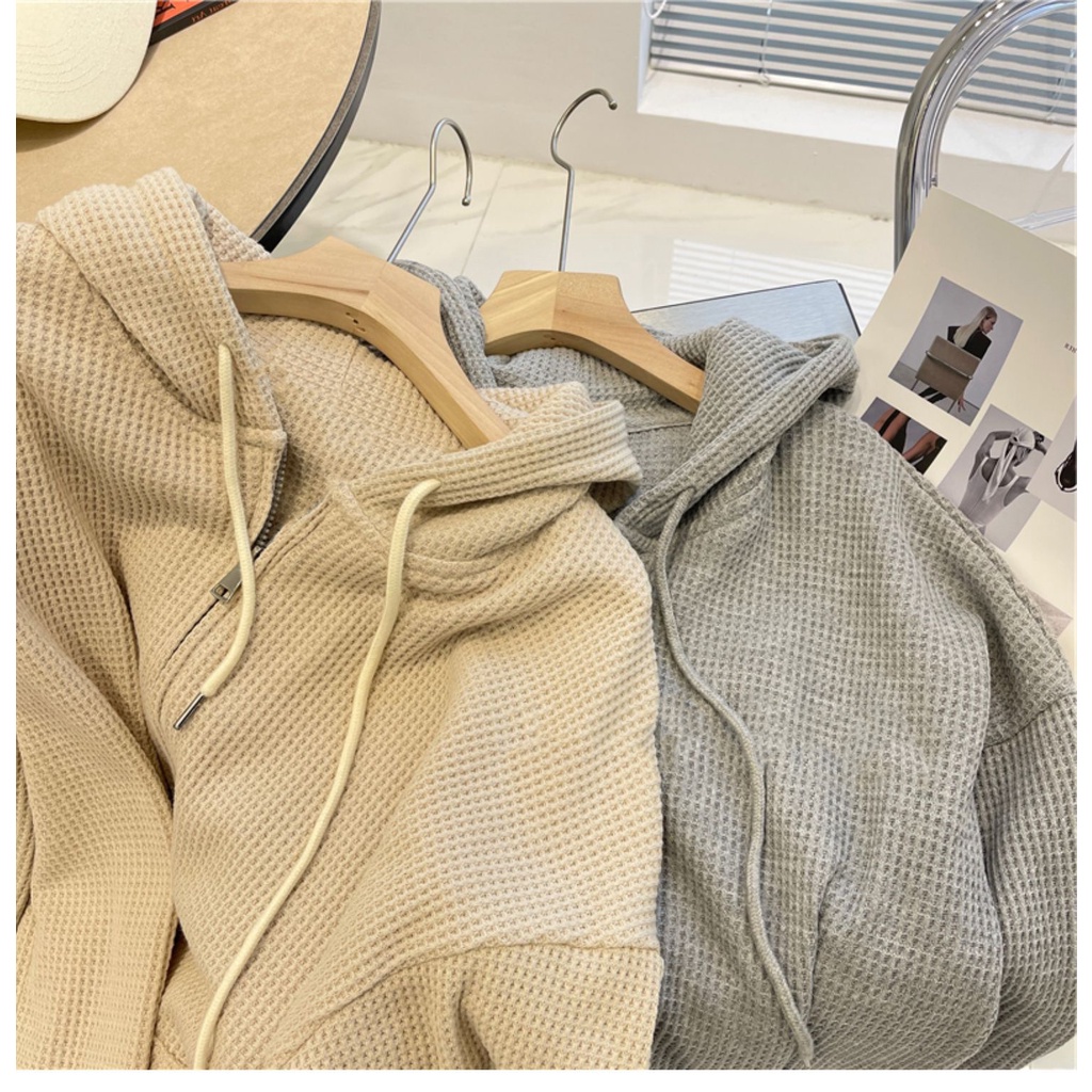 NINGFASHION เสื้อคลุมกันหนาวเเขนยาวมีฮู้ด ผู้หญิง เสื้อคลุมสีพื้น ผ้าไม่หนามาก รุ่นW9809