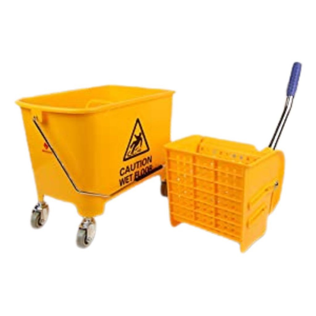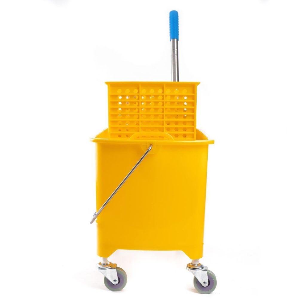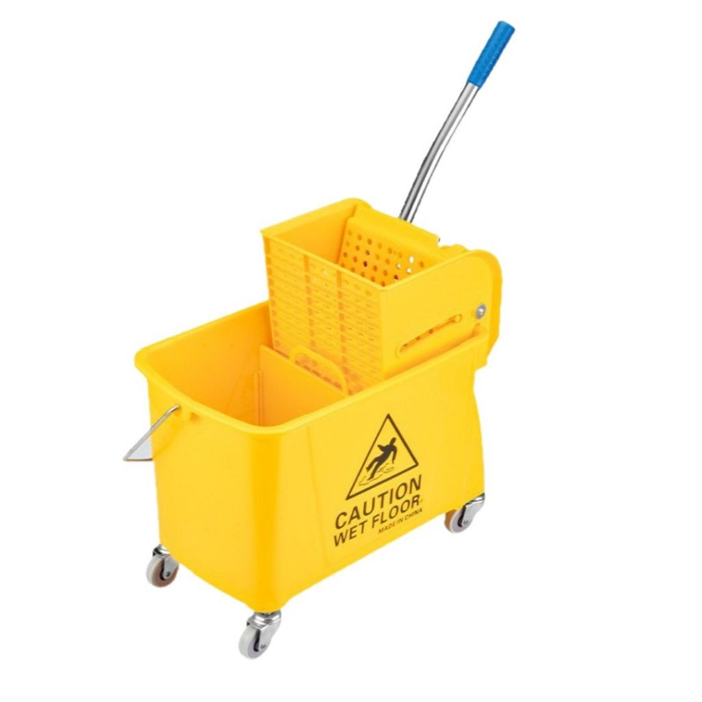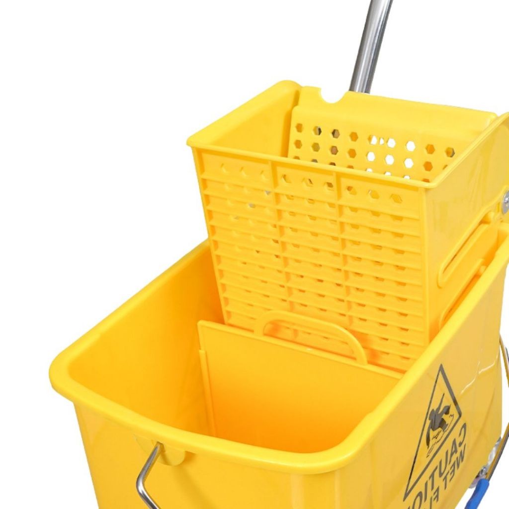 ถังถูพื้นสีเหลืองพร้อมรถเข็นคั้นน้ำ รถเข็นถูพื้น ถังถูพื้นแบบถังอุตสาหกรรม ถังถูพื้น ถังม๊อบบีบผ้าม็อบถูพื้น 24L