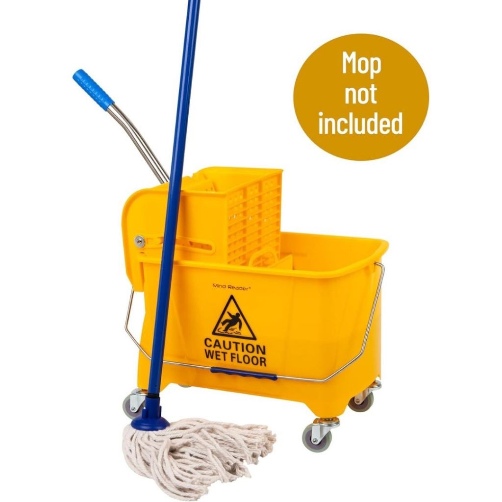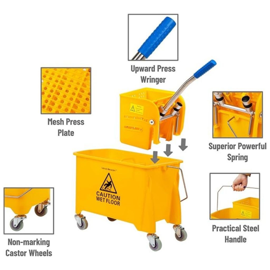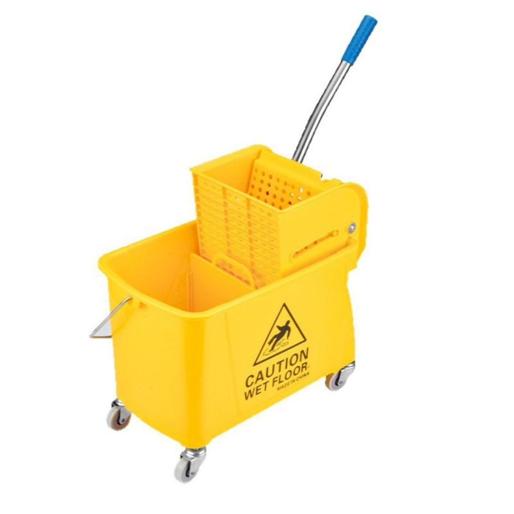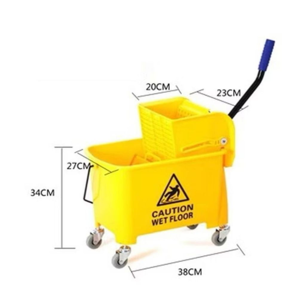 ถังถูพื้นสีเหลืองพร้อมรถเข็นคั้นน้ำ รถเข็นถูพื้น ถังถูพื้นแบบถังอุตสาหกรรม ถังถูพื้น ถังม๊อบบีบผ้าม็อบถูพื้น 24L