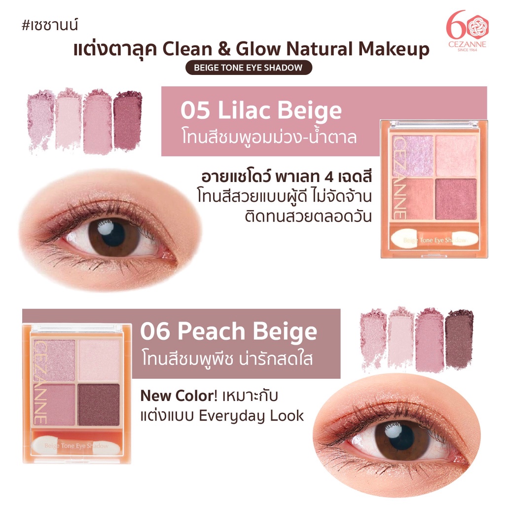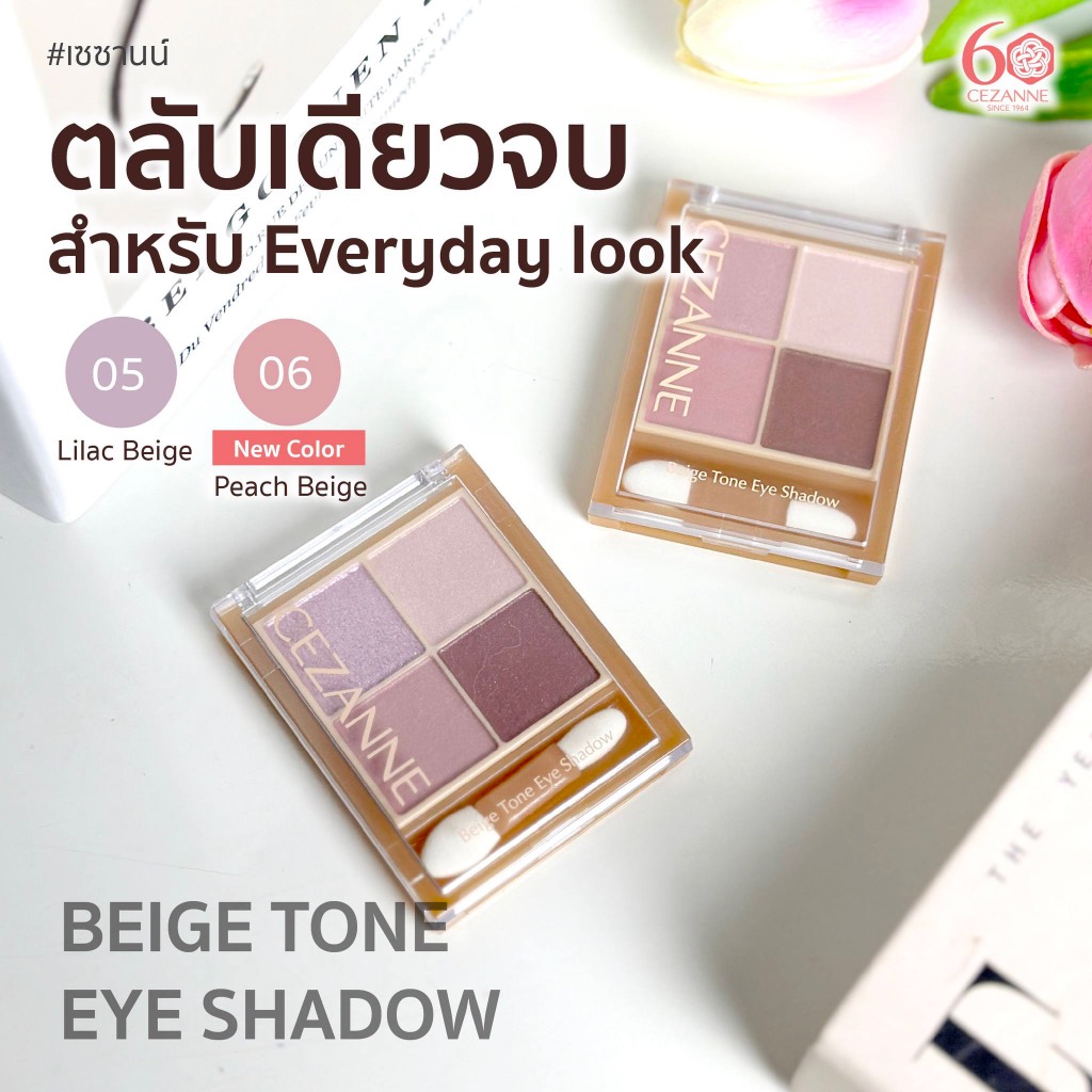 CEZANNE Beige Tone Eye Shadow พาเลทอายแชโดว์ 4 เฉดสี เนื้อกลิตเตอร์- ชิมเมอร์ - เนื้อแมท