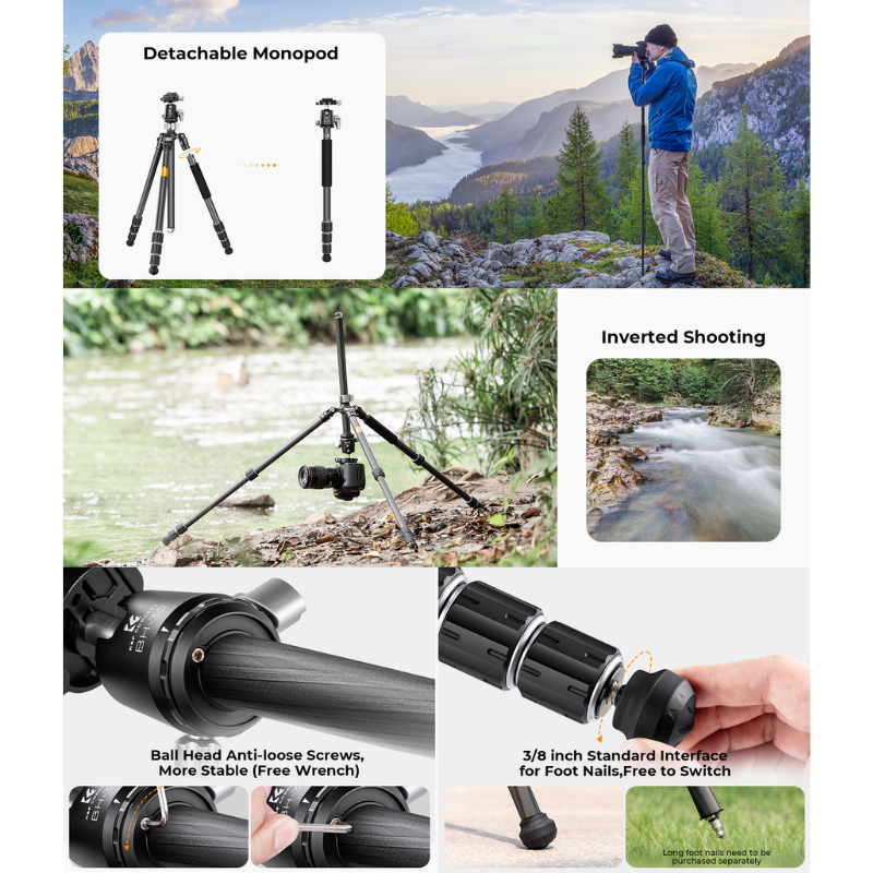 ขาตั้งกล้อง K&F X254C4+BH-30L Carbon Fiber (KF09.116)