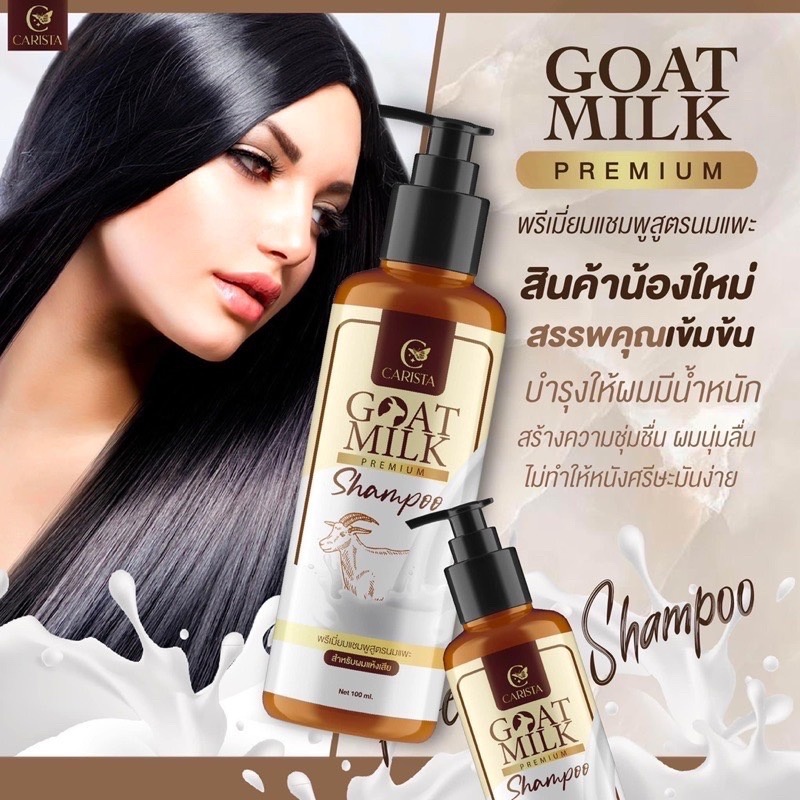 [5ขวด]CARISTA GOATMILK PREMIUM SHAMPOO แชมพูนมแพะ คาริสต้า สูตรนมแพะ เคราติน เงางาม รังแค ผมแตกปลาย ผมมัน100ml