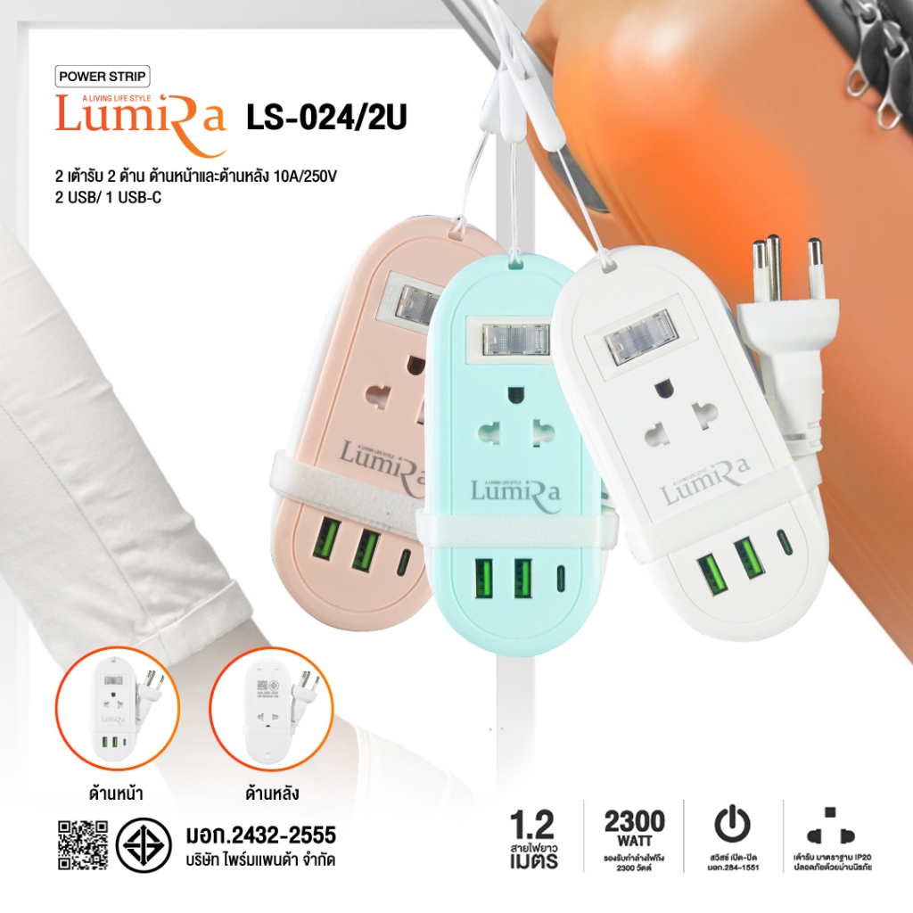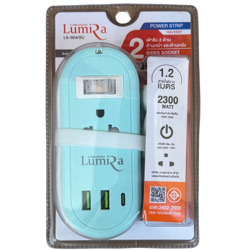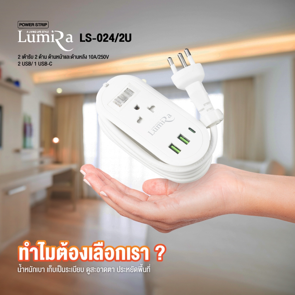‼️ ส่งทุกวัน ปลั๊กไฟ พ่วง ยี่ห้อ Lumira รุ่น LS-024/2U 2 ช่อง 2USB/1 Type-C สาย 1.2 ม. ประกัน 3 ปี