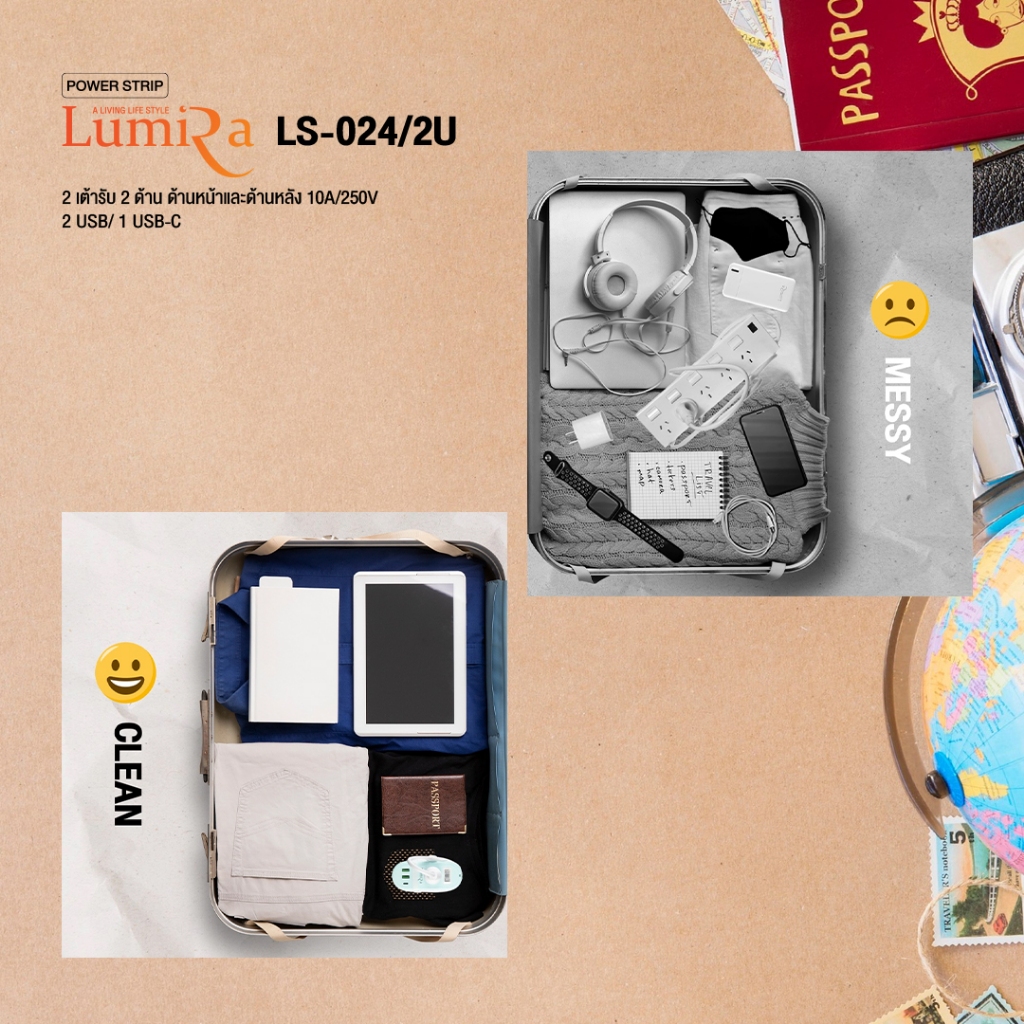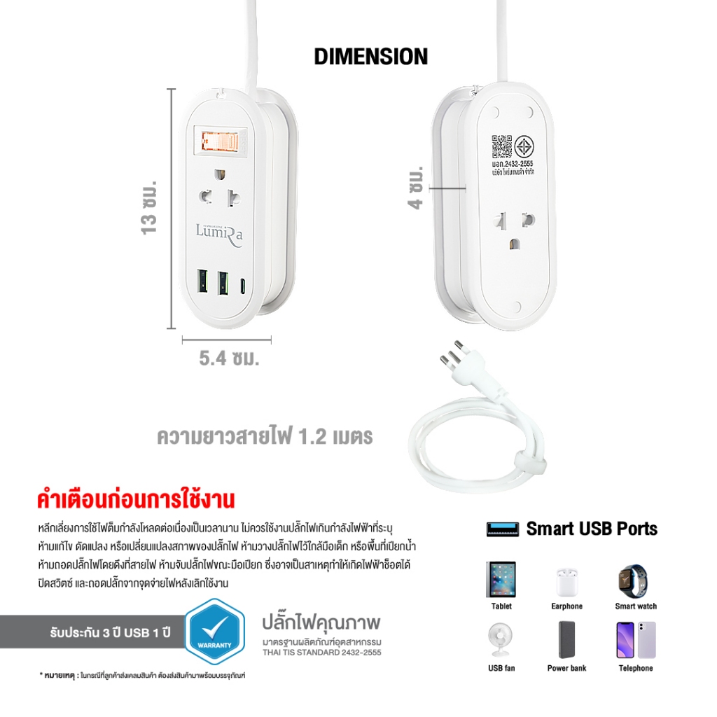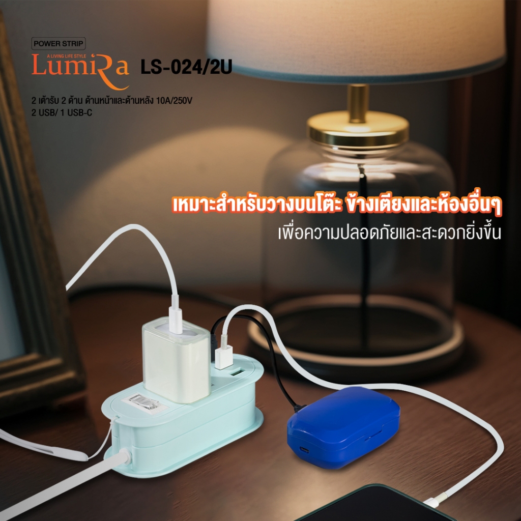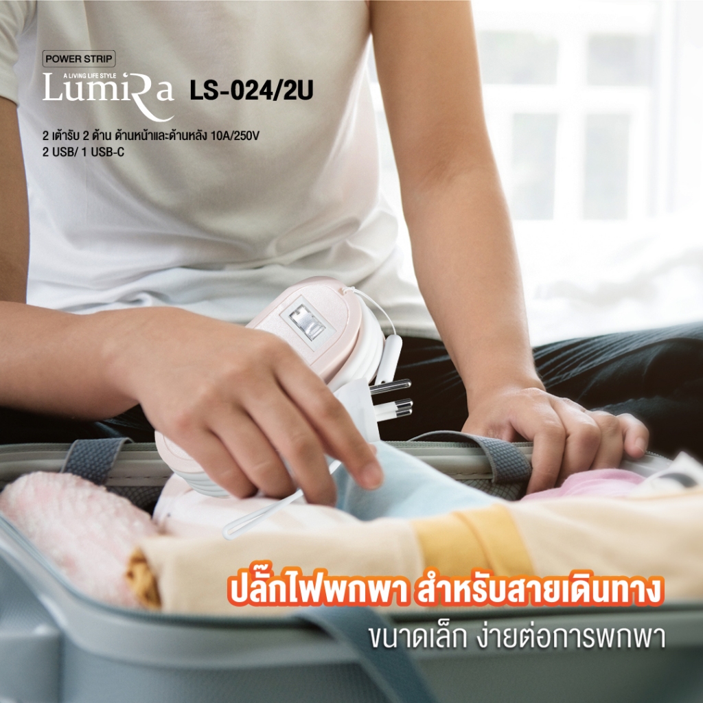 ‼️ ส่งทุกวัน ปลั๊กไฟ พ่วง ยี่ห้อ Lumira รุ่น LS-024/2U 2 ช่อง 2USB/1 Type-C สาย 1.2 ม. ประกัน 3 ปี