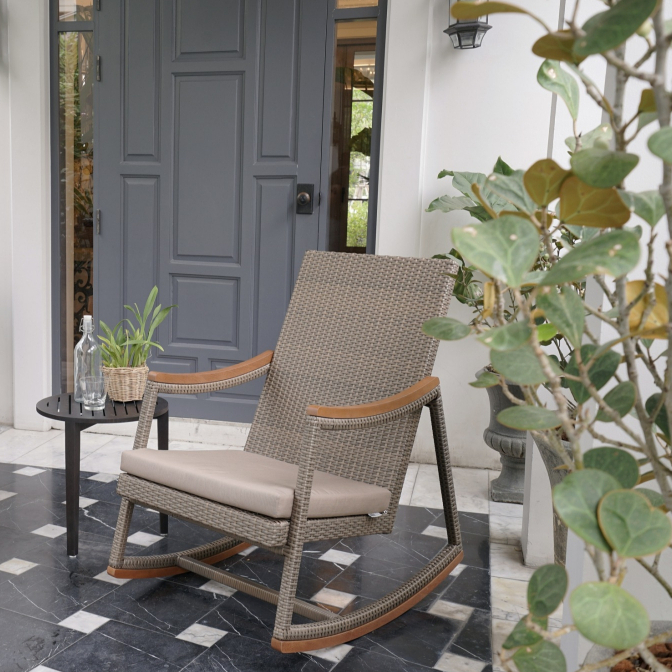 modernoutdoor เก้าอี้โยก Modern Outdoor Haxley Rocking Chair Synthectic Rattan With Cushion - Taupe