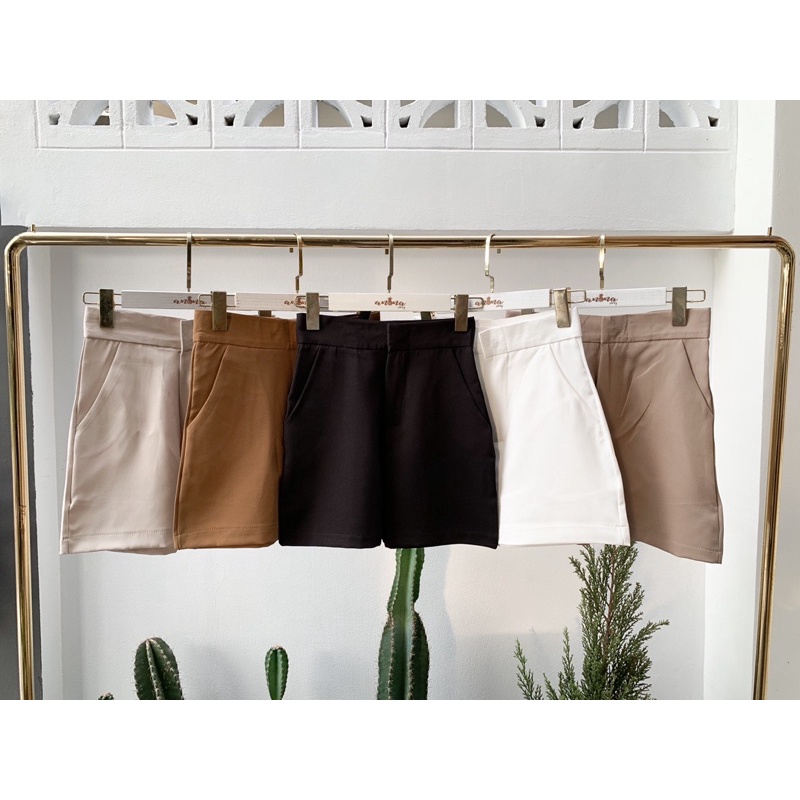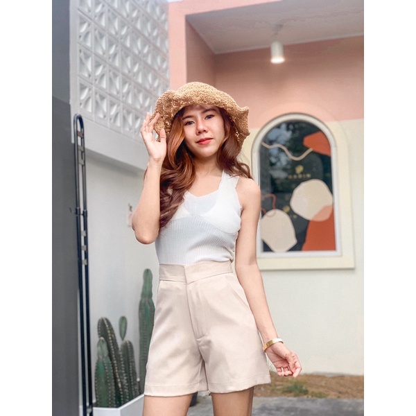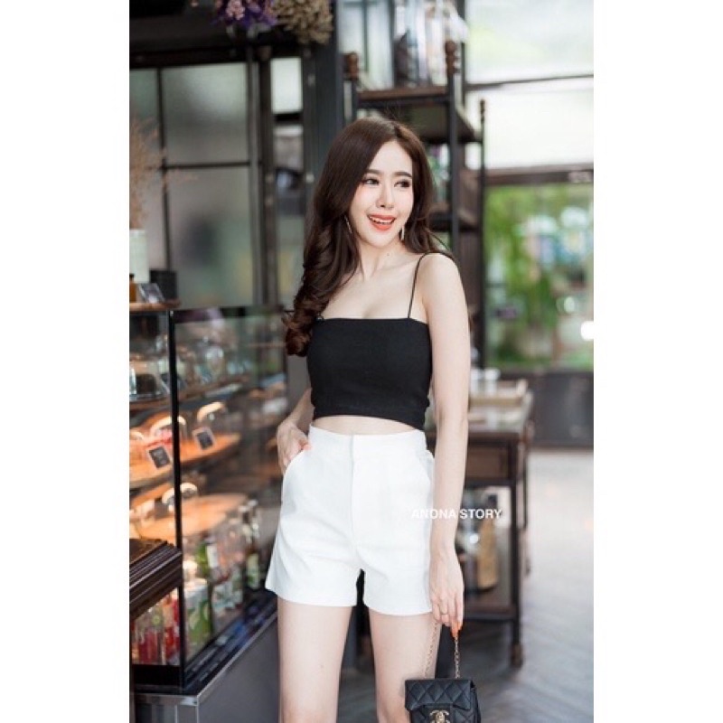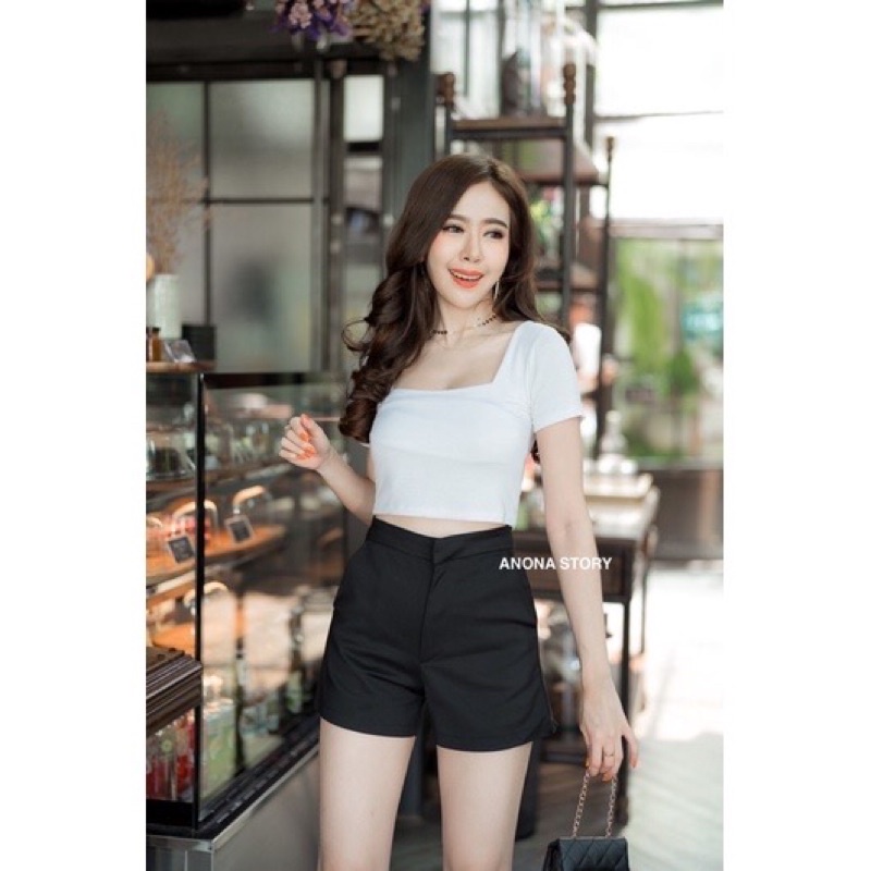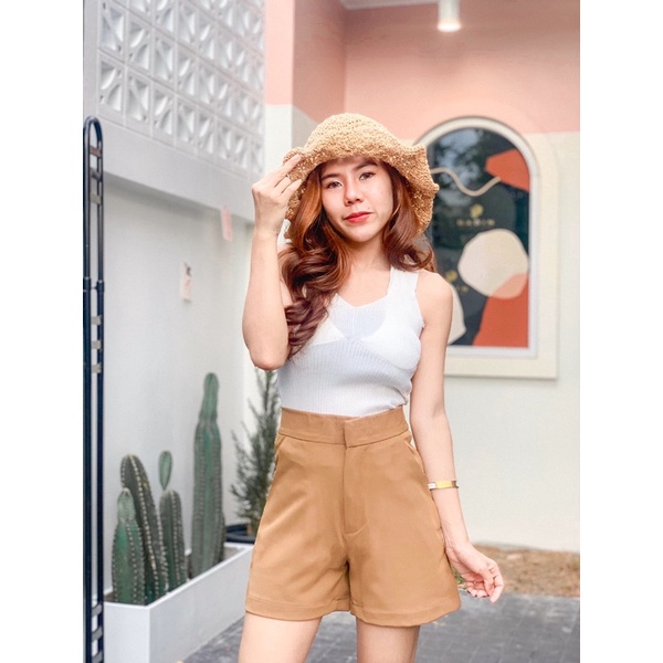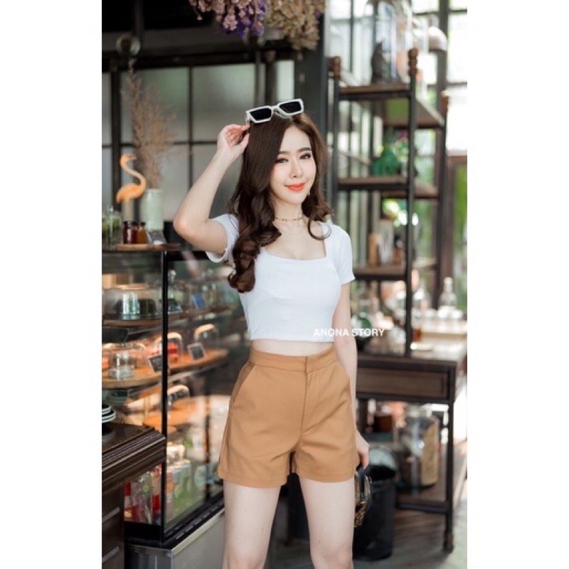 (B) กางเกงขาสั้นตะขอหน้า ผ้าเปเป้ ทรงสวยมากงานป้าย🔥พร้อมส่ง