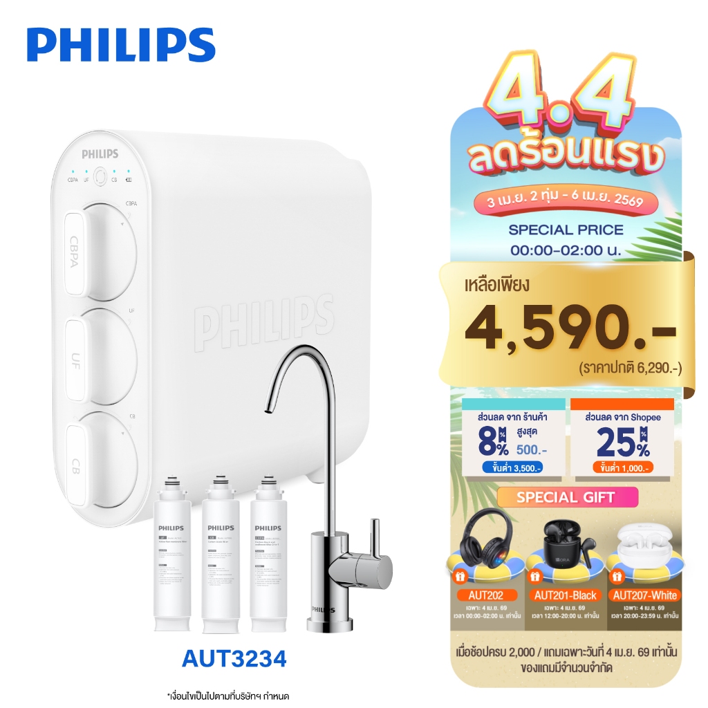 Philips water AUT3234 เครื่องกรองน้ําดื่ม ที่กรองน้ํา การกรอง 4 ขั้นตอน