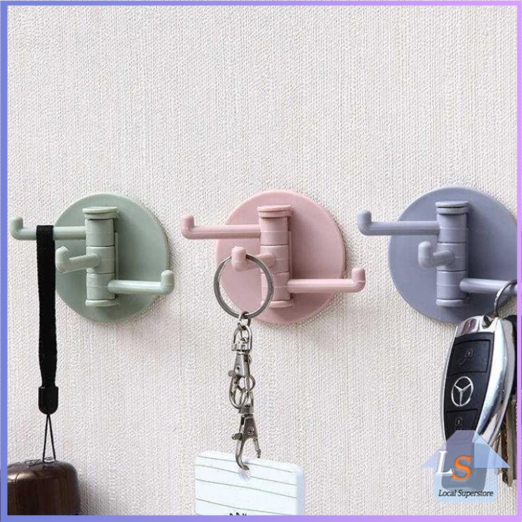 """ 3 แฉก """ ติดผนังแบบโดยไม่ต้องเจาะผนัง ตะขอ Rotating hook for 1pc