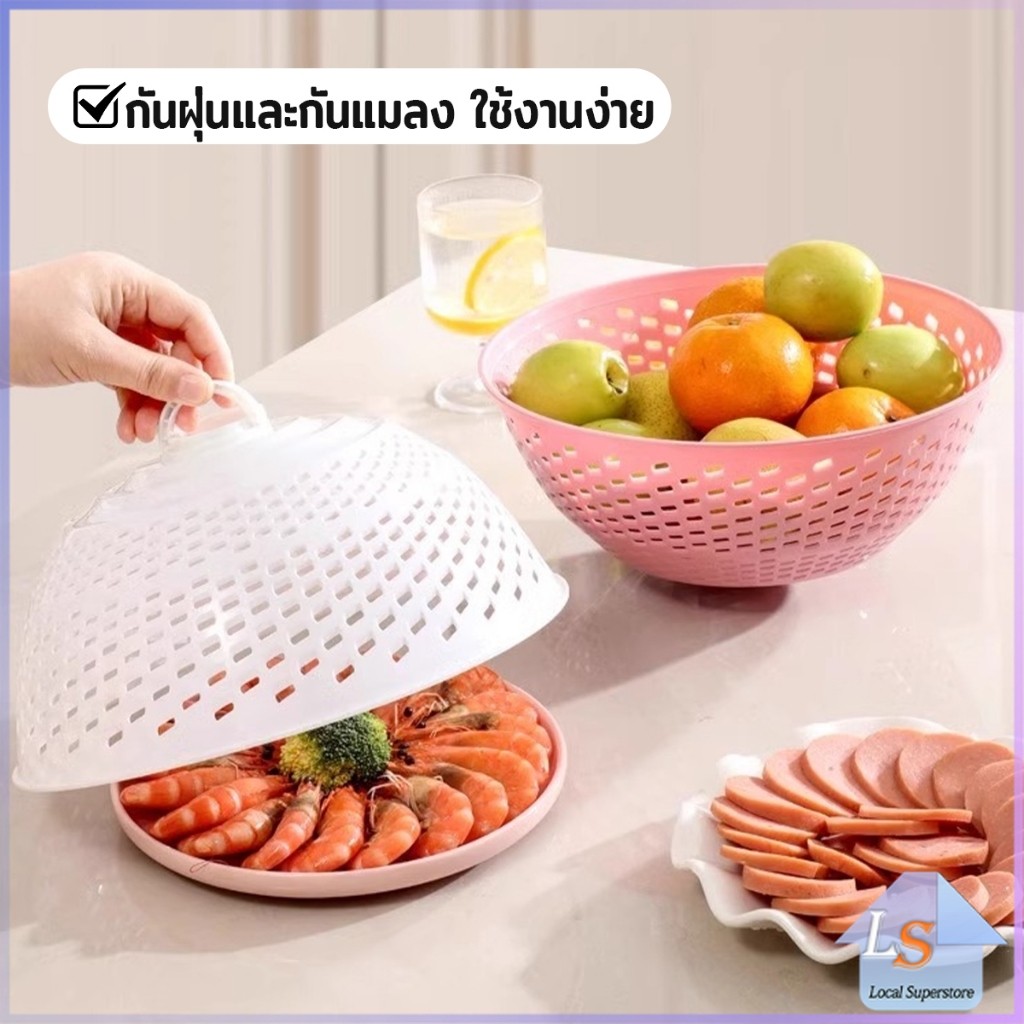 ฝาชีครอบอาหาร ฝาชีพลาสติก ป้องกันแมลงวัน สามารถใช้ 2 แบบ ใช้เป็นที่ล้างผัก ผลไม้ได้ สําหรับโต๊ะอาหาร food cover