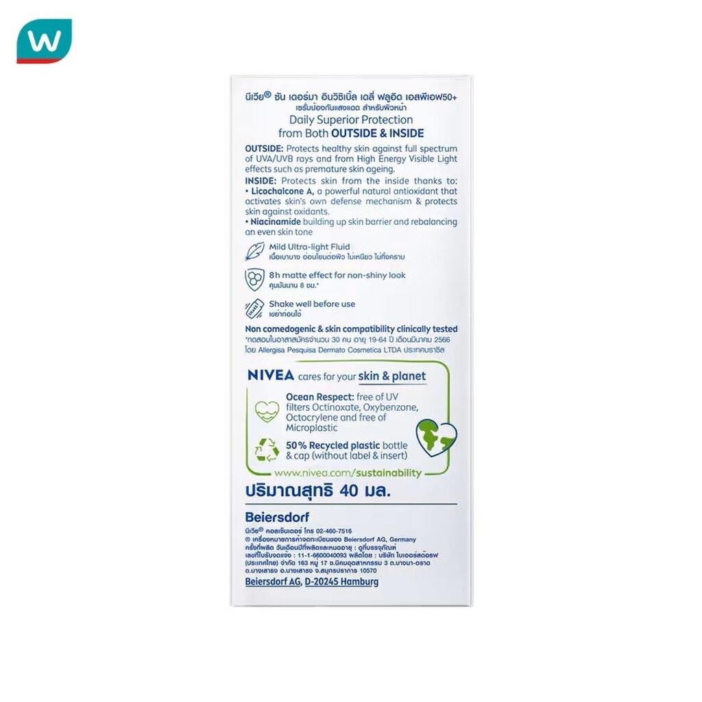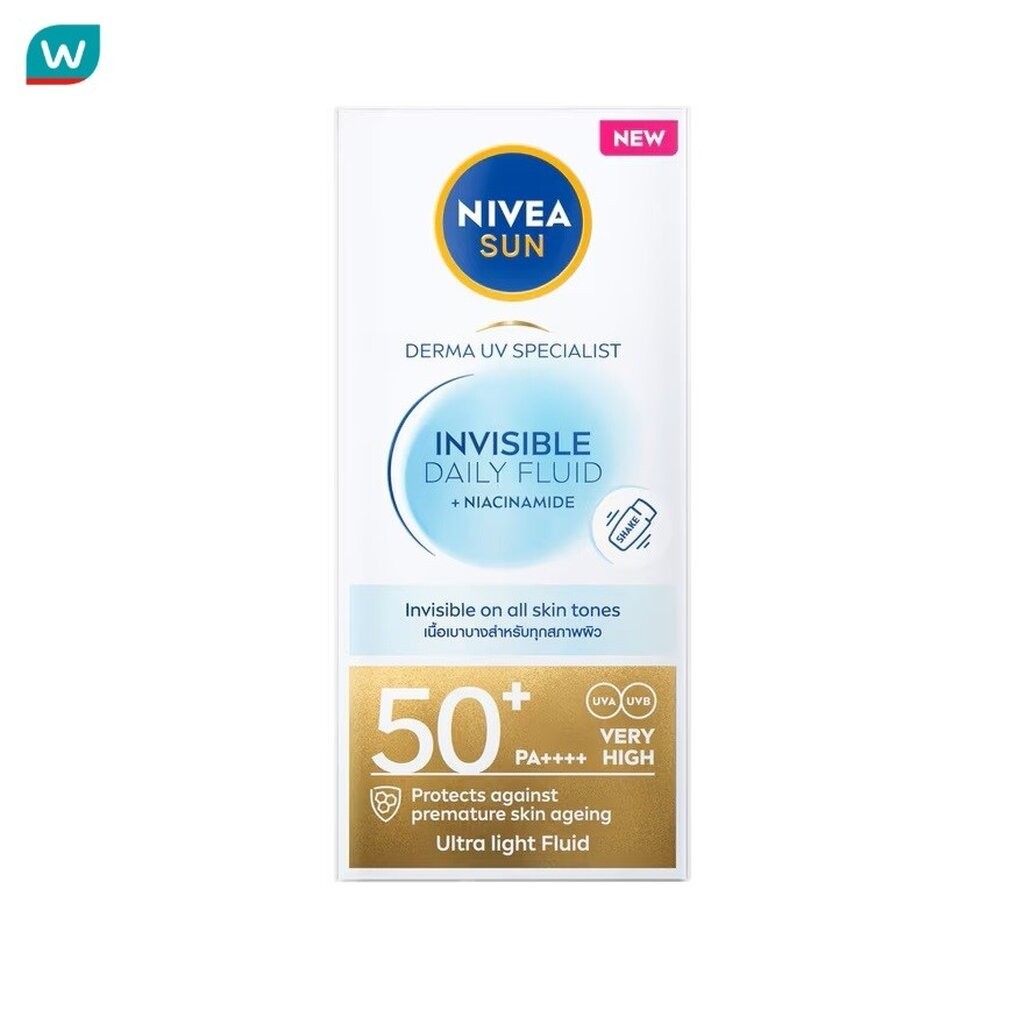 NIVEA นีเวีย ซัน เดอร์มา อินวิซิเบิ้ล เดลี่ ฟลูอิด เอสพีเอฟ50+ 40 มล.