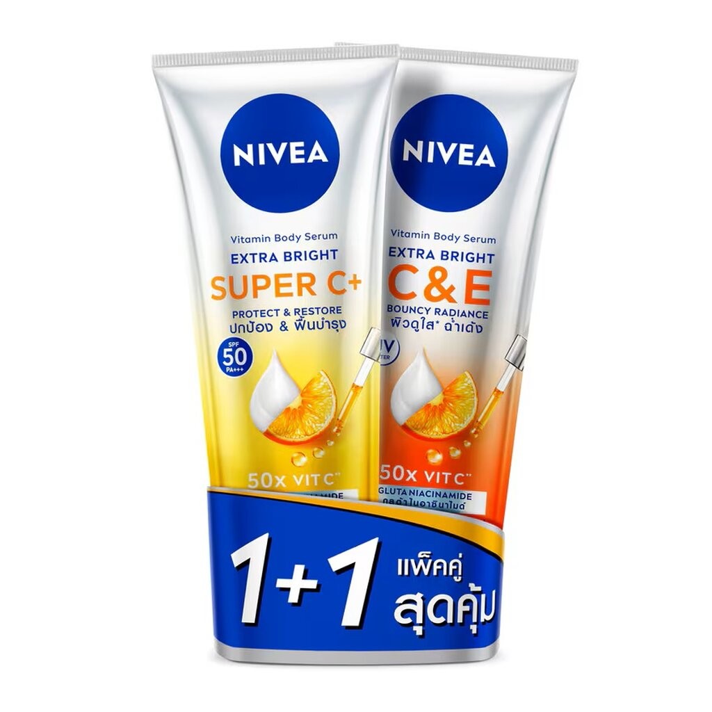 Nivea นีเวีย วิตามิน บอดี้ เซรั่ม เอ็กซ์ตร้า ไบรท์ ซูเปอร์ ซี+ แอนด์ ซี อี 300 มล.แพ็คคู่