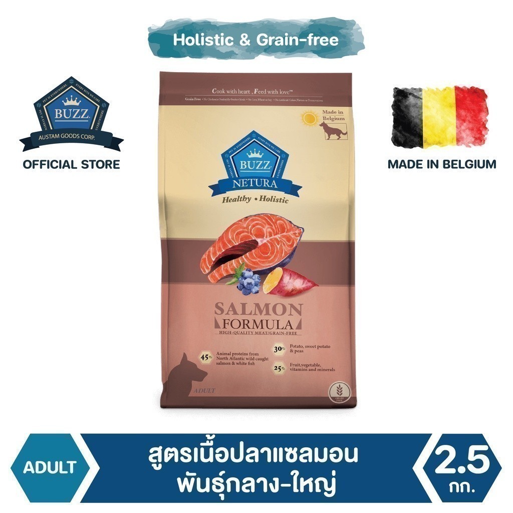 Buzz Netura อาหารสุนัขพรีเมียมโฮลิสติก-เกรนฟรี สูตรเนื้อปลาแซลมอน สำหรับสุนัขโตพันธุ์กลาง-ใหญ่ 2.5 kg